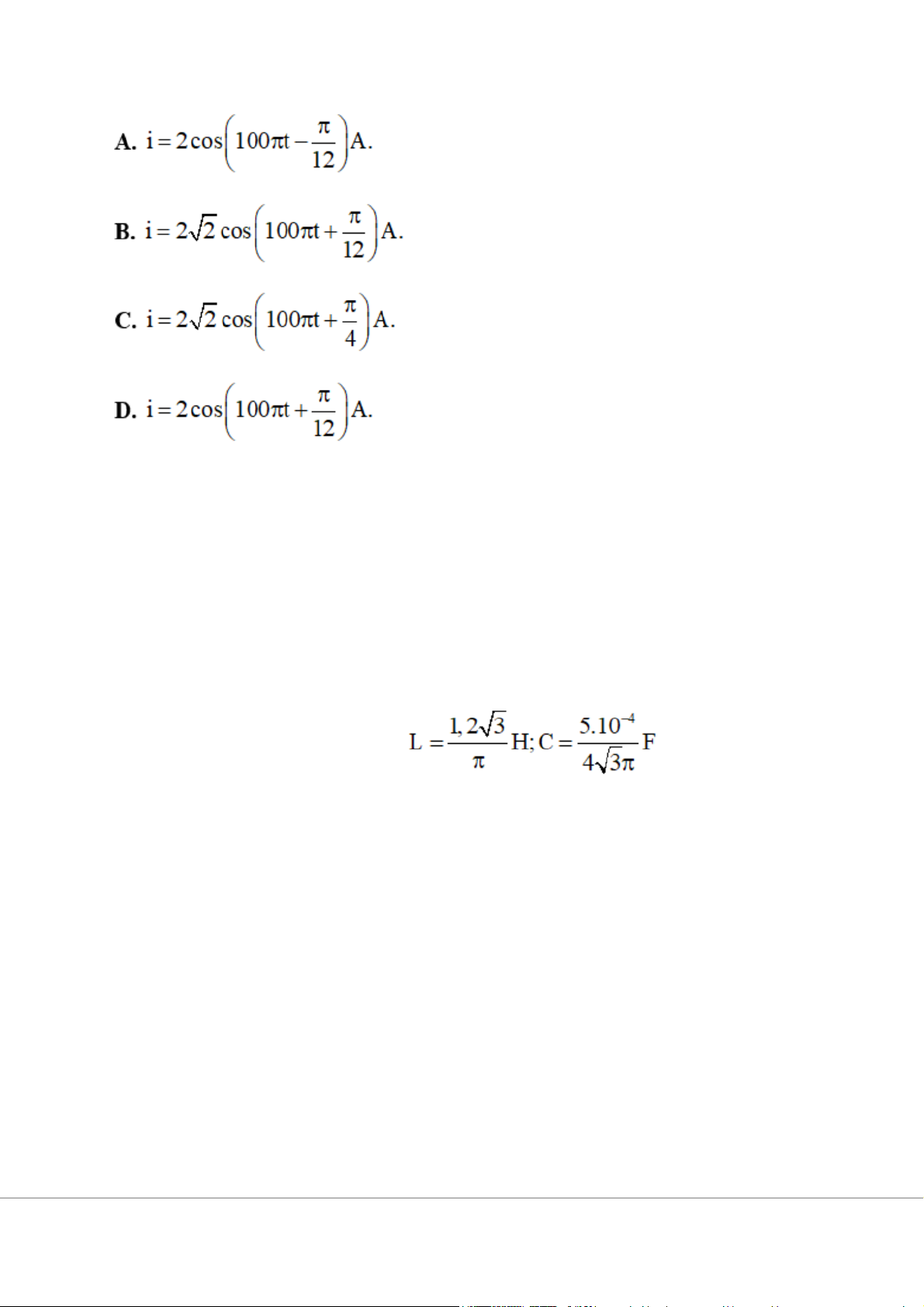 Câu 6. Cho mạch điện xoay chiều RLC mắc nối tiếp. Biết L = 318 (mH), C = 17
