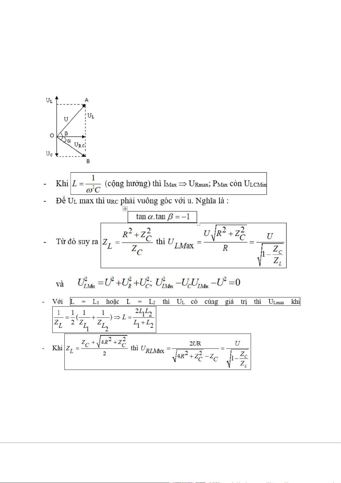 - ωR, ωL, ωC lần lượt là tần số góc khi điện áp UR, UL, UC cực đại, ta có: ωR2 = ωL. ωC