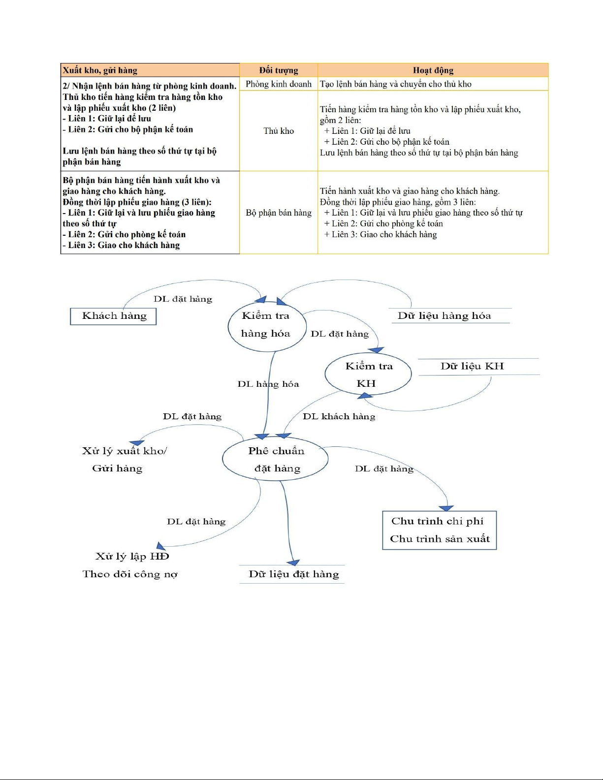 + Thỏa -> yêu cầu xuất kho, gửi hàng - Thông tin đầu ra: