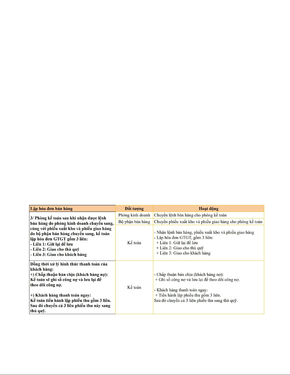 Chu trình doanh thu bao gồm các hoạt động chính như sau: - Xử lý đặt hàng - Xuất kho, gửi hàng - Lập hóa đơn bán hàng -