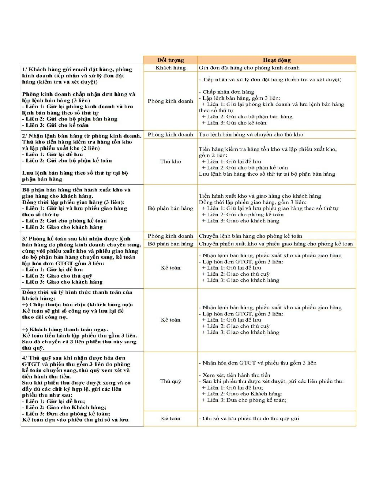 cách xử lý thông tin liên quan đến việc bán hàng hay cung cấp dịch vụ cho khách hàng và thu tiền thanh toán.
