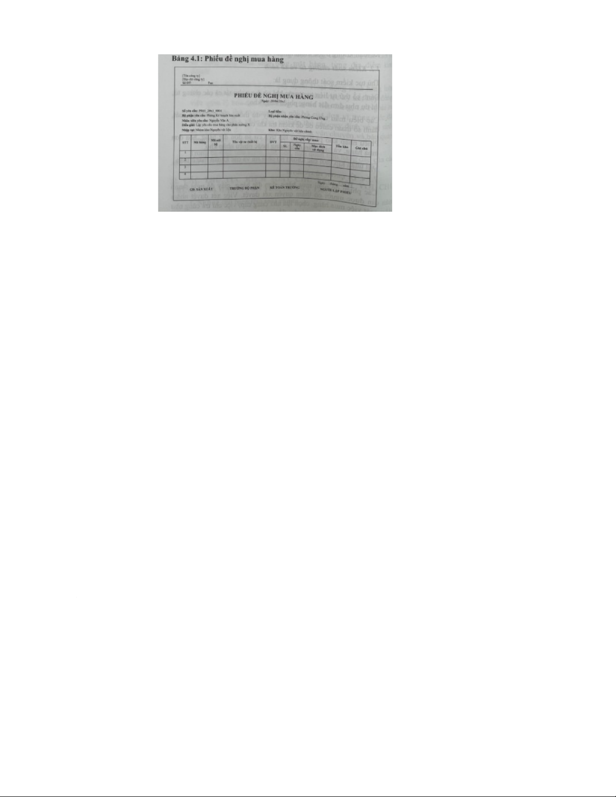 sau đây: đề nghị mua hàng, xét duyệt mua hàng, chọn nhà cung cấp, đặt hàng, nhận hàng,