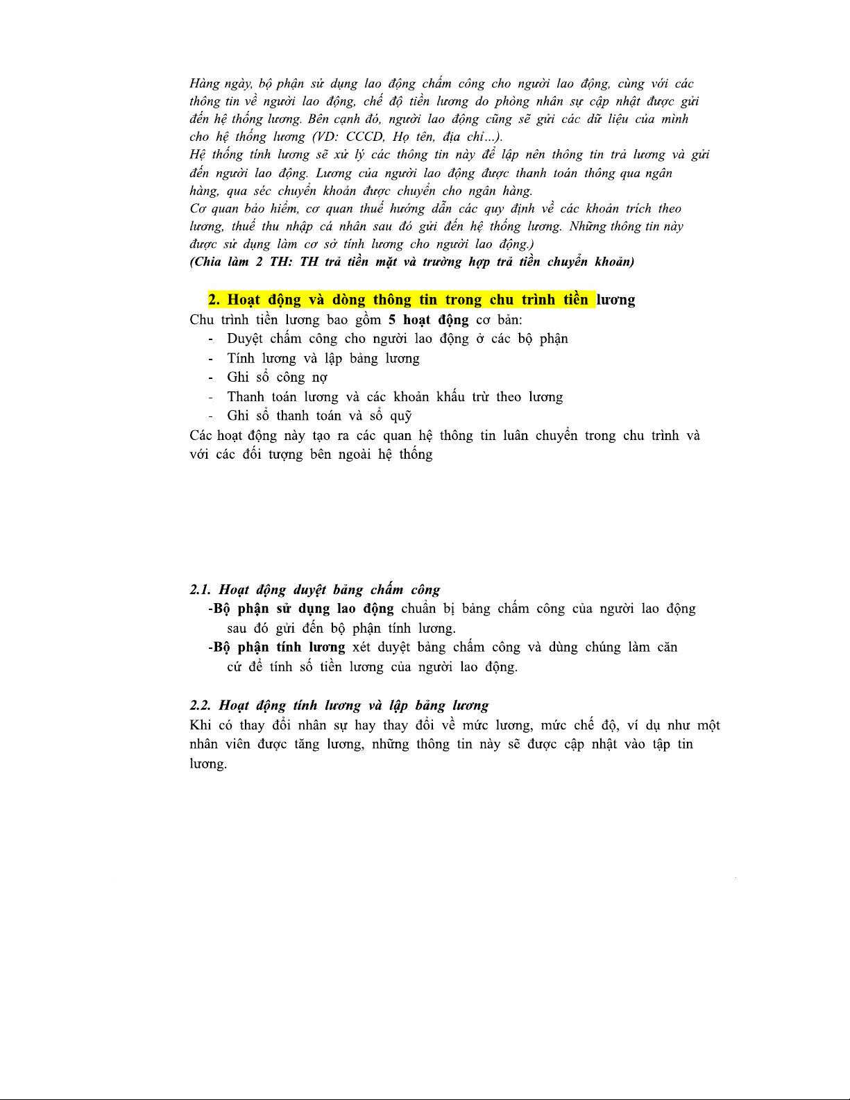 CHU TRÌNH TIỀN LƯƠNG - MÔN KIỂM SOÁT NGAY TẠI DOANH NGHIỆP