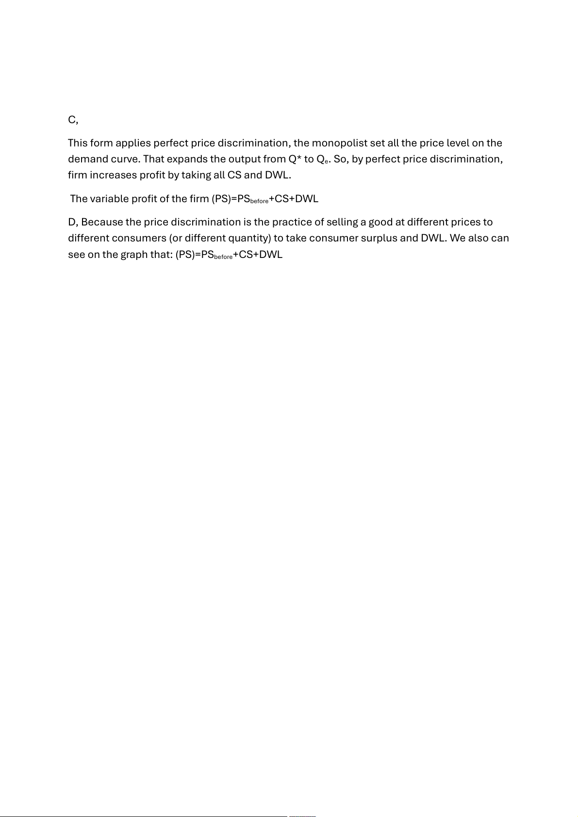 demand curve. That expands the output from Q* to Qe. So, by perfect price discrimination,