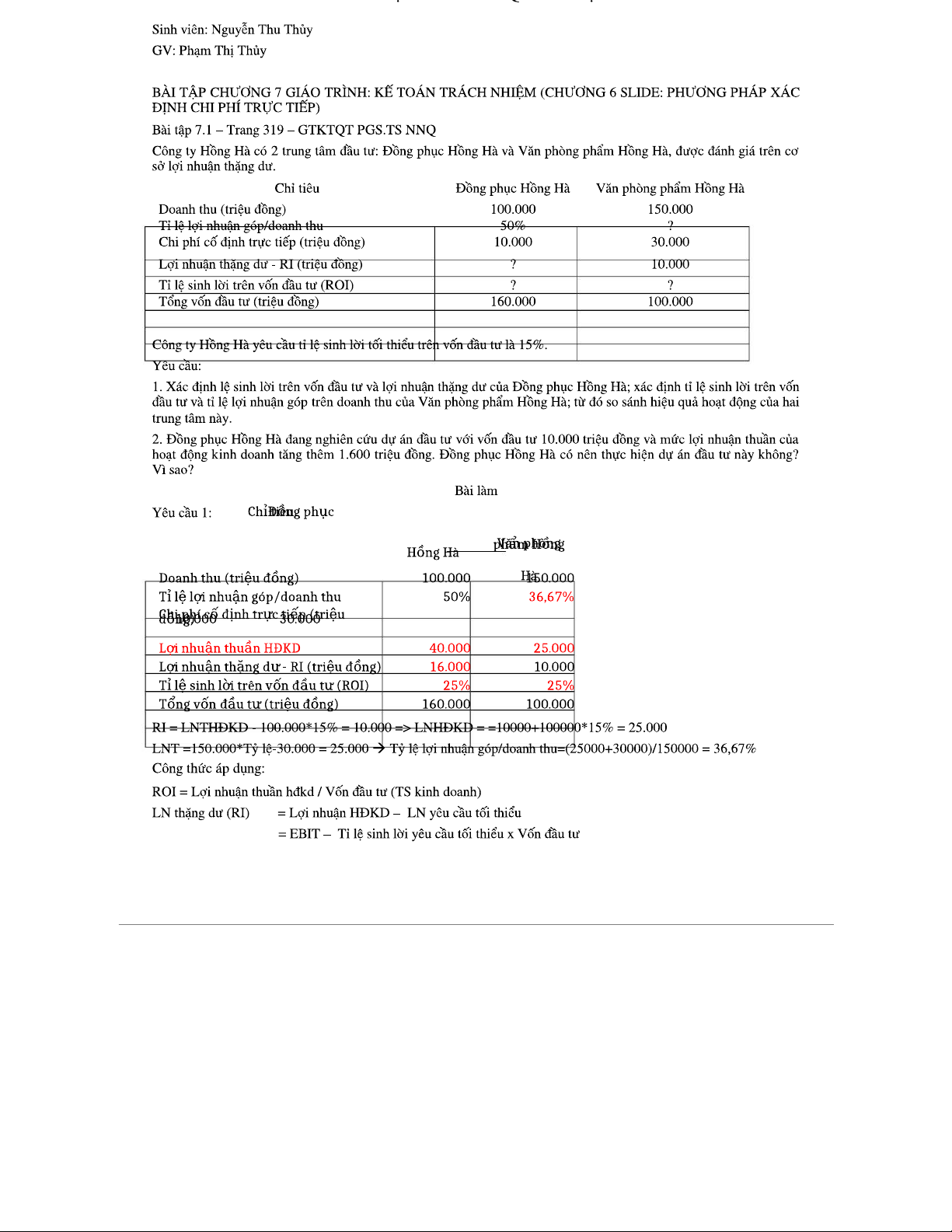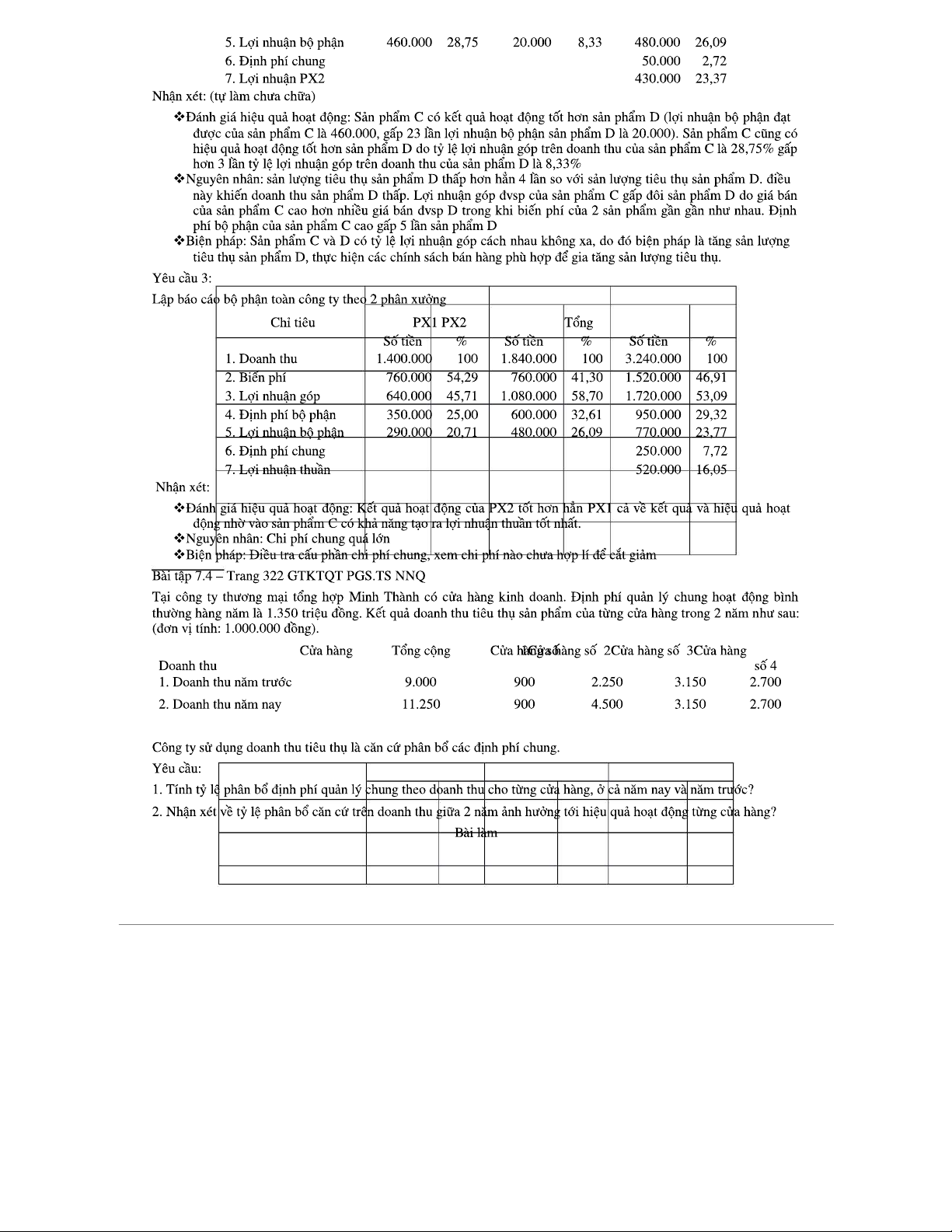 Chữa Bài Tập Kế Toán Quản Trị 2 - Bài Tập từ Chương 7 đến Chương 8