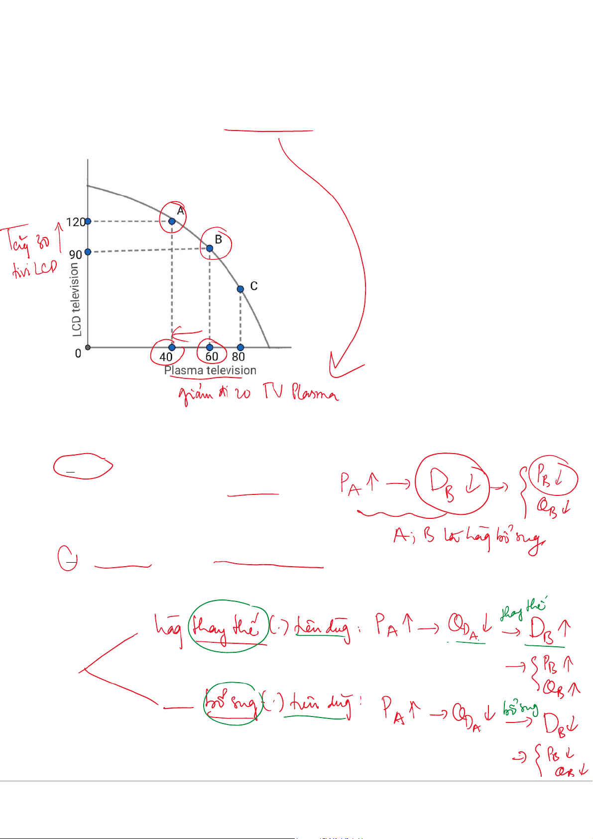 Câu 27: Hình dưới đây cho biết chi phí cơ hội khi chuyển từ điểm B sang điểm A là: A. -2/1 B. -1,5 C. -3/4 D. -20 Câu 28: Gi s