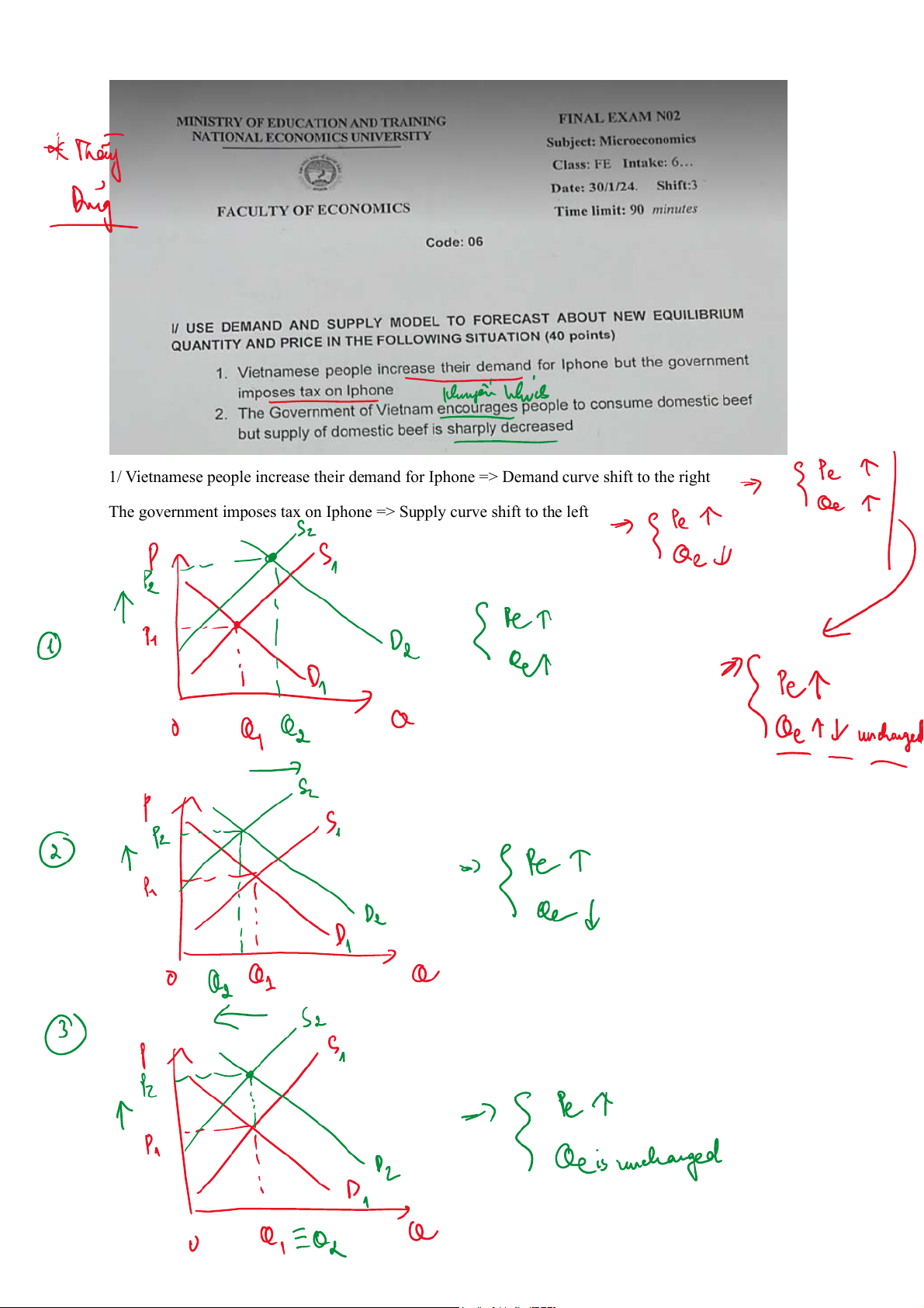 1/ Vietnamese people increase their demand for Iphone => Demand curve shift to the right