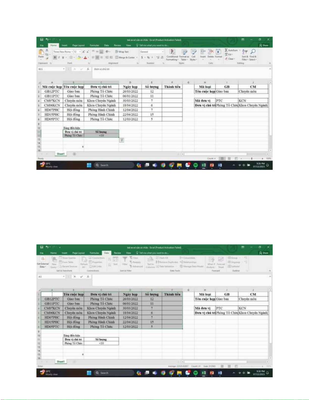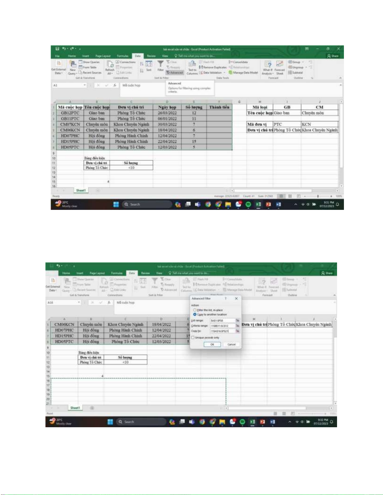 +) B3: Ấn vào Data trên thanh công cụ +) B4: Ấn vào Advanced lOMoAR cPSD| 48302938