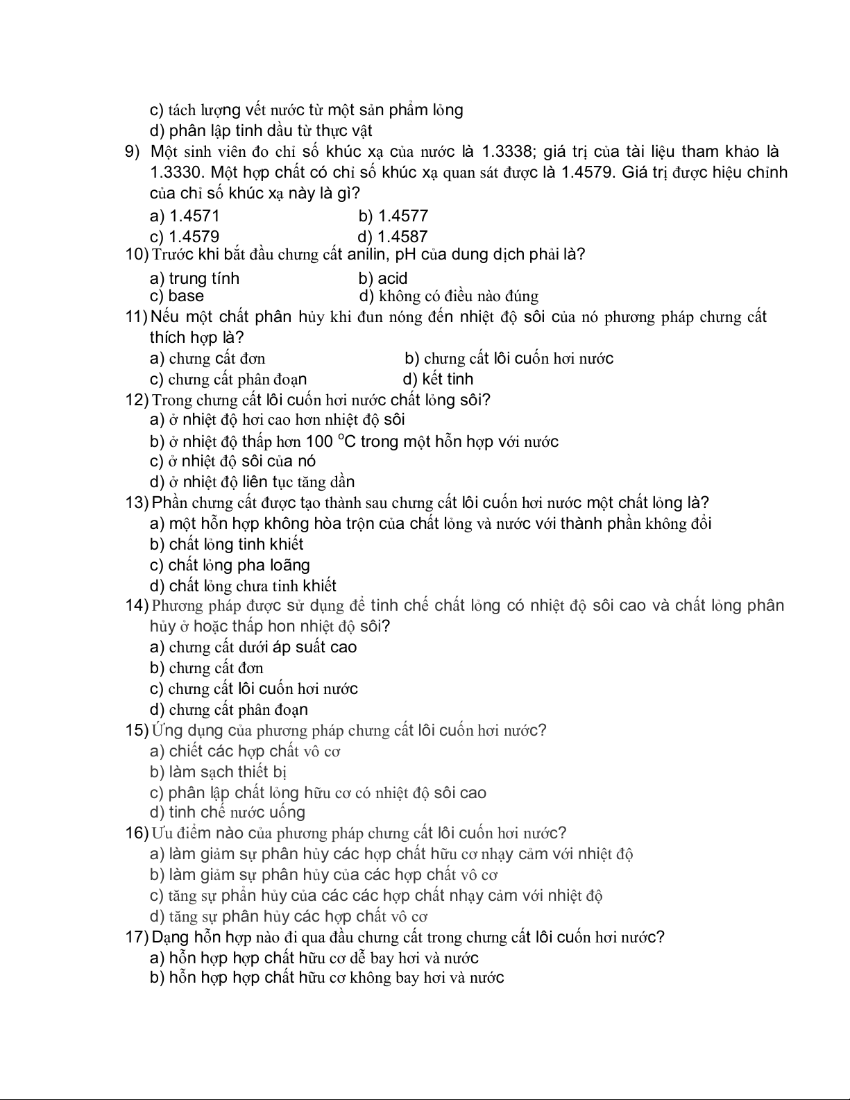 c) chưng cất lôi cuốn hơi nước d) chưng cất phân đoạn