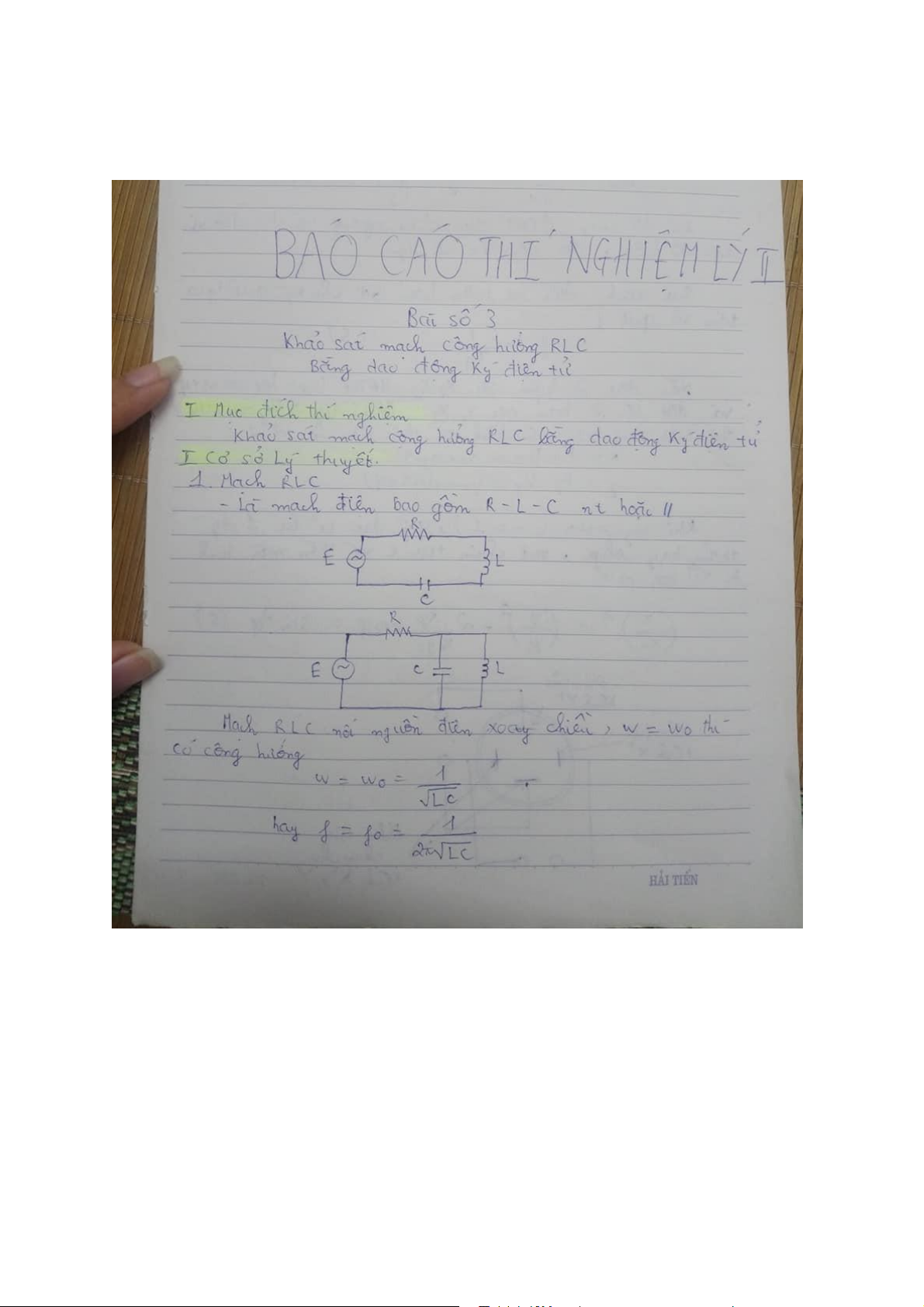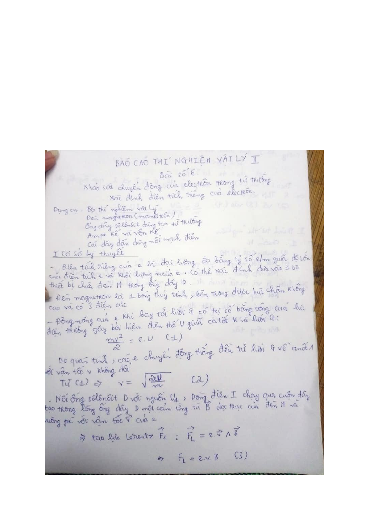 Chuẩn bị thí nghiệm VLĐC 2 Bài số 1: