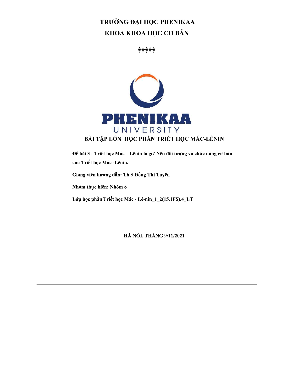 Chức Năng Cơ Bản Của Triết Học Mác - Lênin - Bài Tiểu Luận 15.1FS