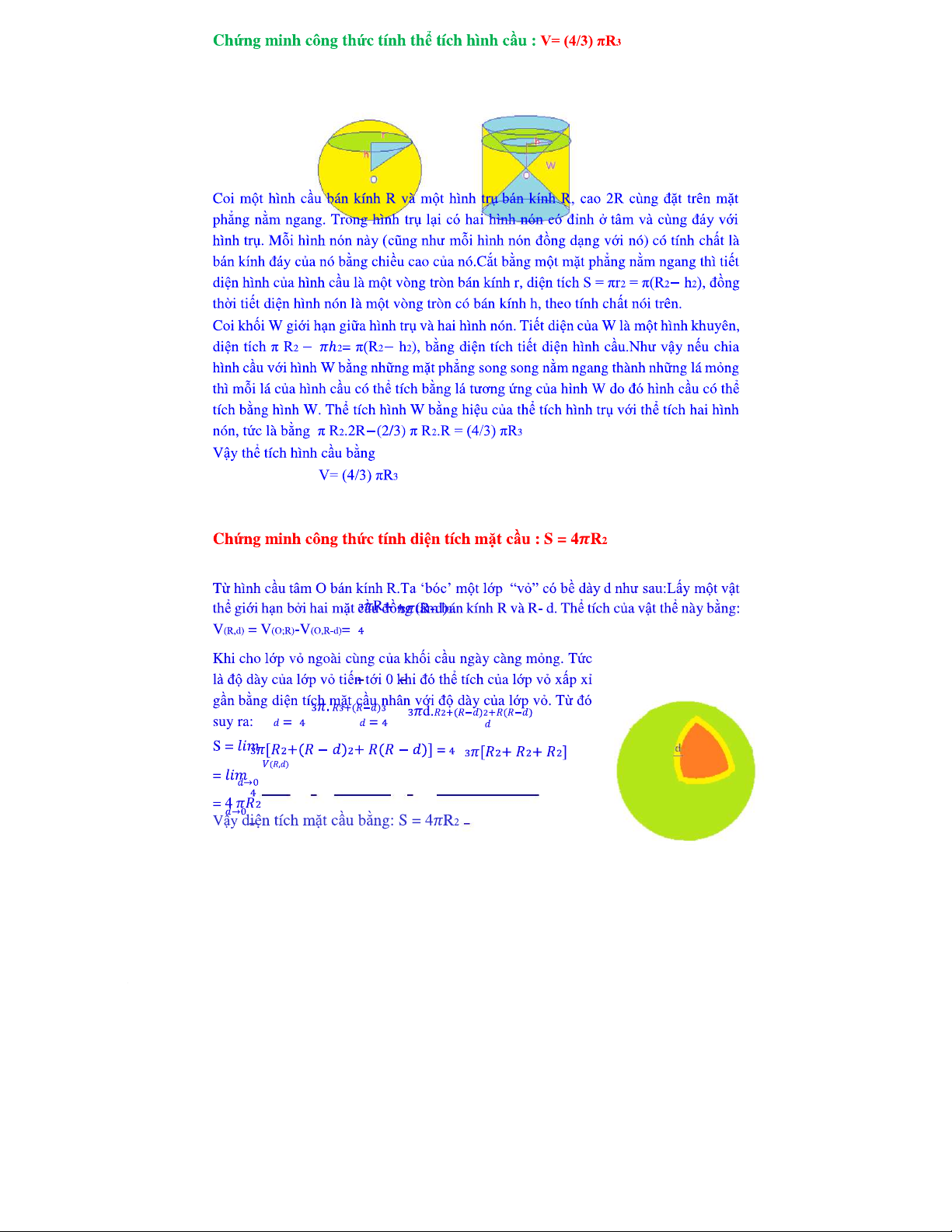 Chứng minh Thể Tích và Diện Tích Hình Cầu: V=(4/3)πR³, S=4πR²