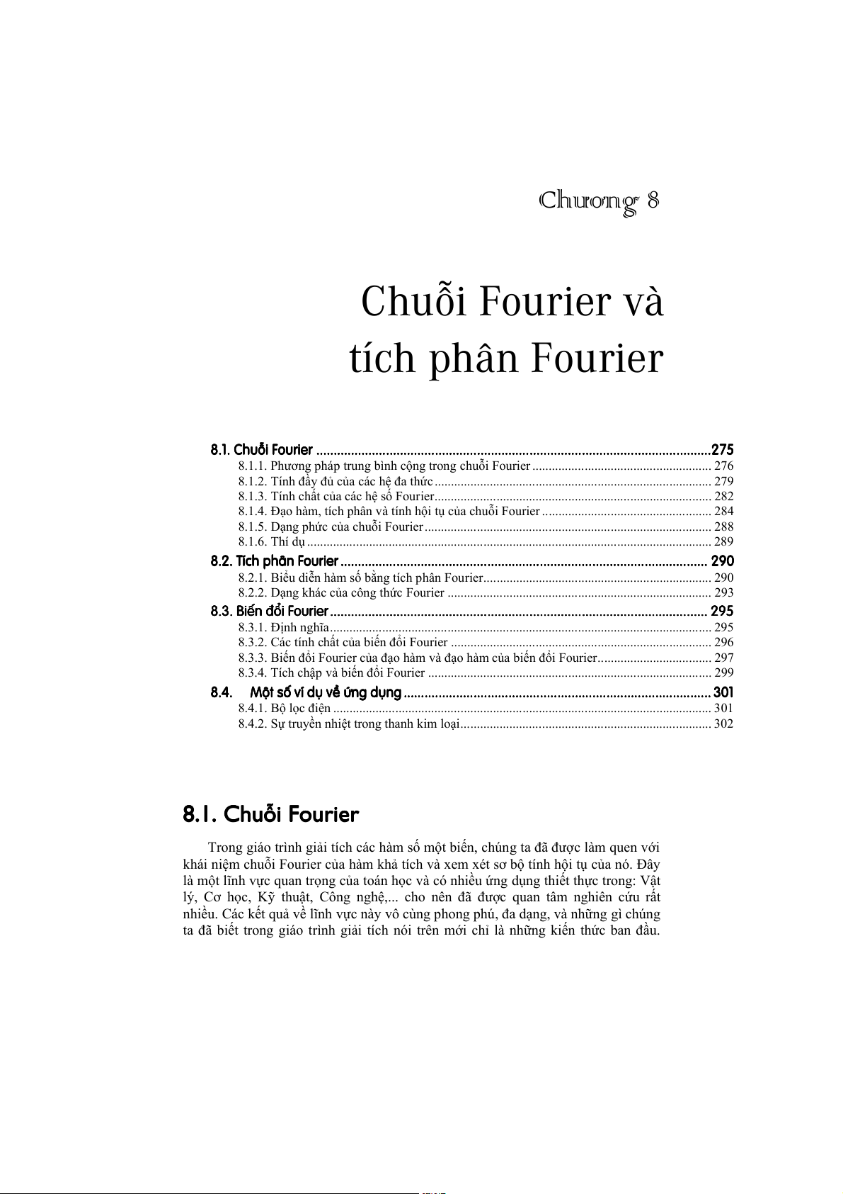 Chương 8. Chuỗi Fourier và tích phân Fourier 279