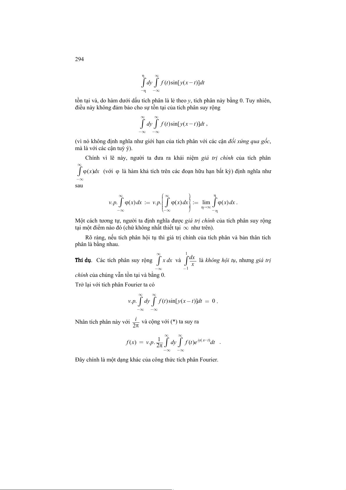 (với ϕ là hàm khả tích trên các đoạn hữu hạn bất kỳ) định nghĩa như −∞ sau ∞ ∞ η . v . p ϕ(x) dx := . v . p ϕ(x) dx ∫ := lim ϕ( x) dx ∫ ∫ . η→∞ −∞ − ∞ −η