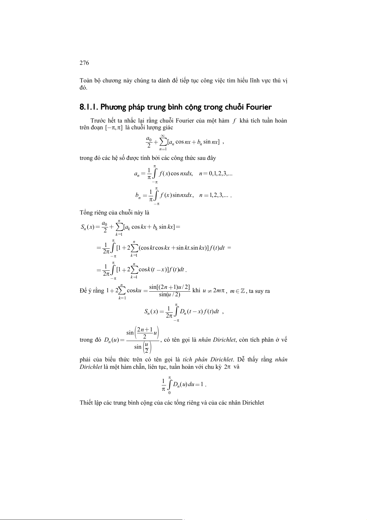 8.1.1. Phương pháp trung bình cộng trong chuỗi Fourier ....................................................... 276