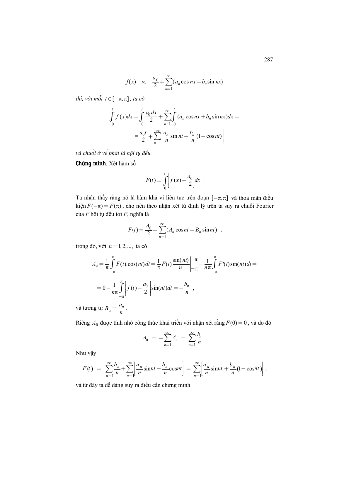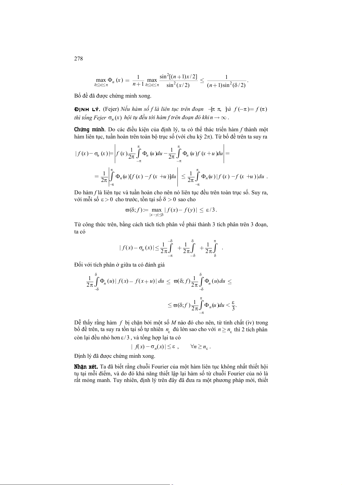 Chương 8. Chuỗi Fourier và tích phân Fourier 277 + + + 0 S ( ) x 1 S ( ) x ... S ( ) n x n σ = , n +1 D + + + 0 (x) 1 D (x) ... D (x) Φ ( ) n x = , n n 1 + và gọi Φ ( ) ừ