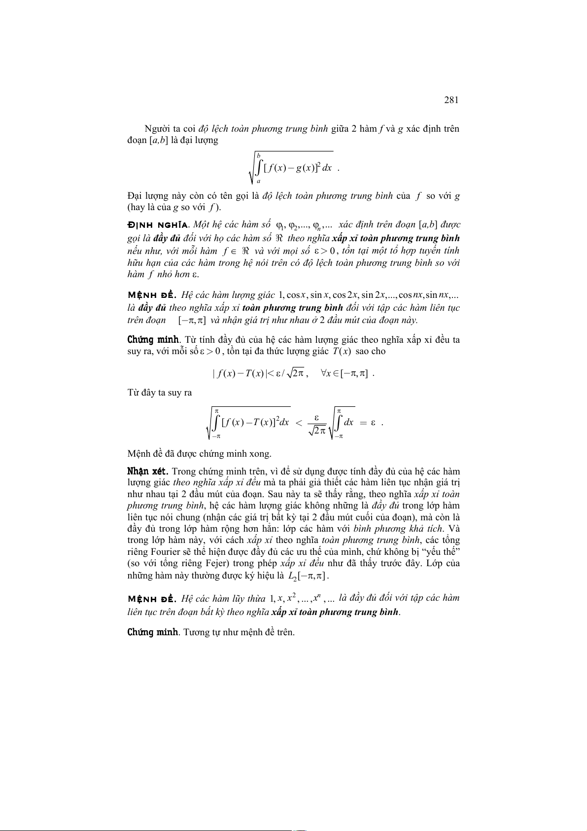8.1.2. Tính đầy đủ của các hệ đa thức ..................................................................................... 279