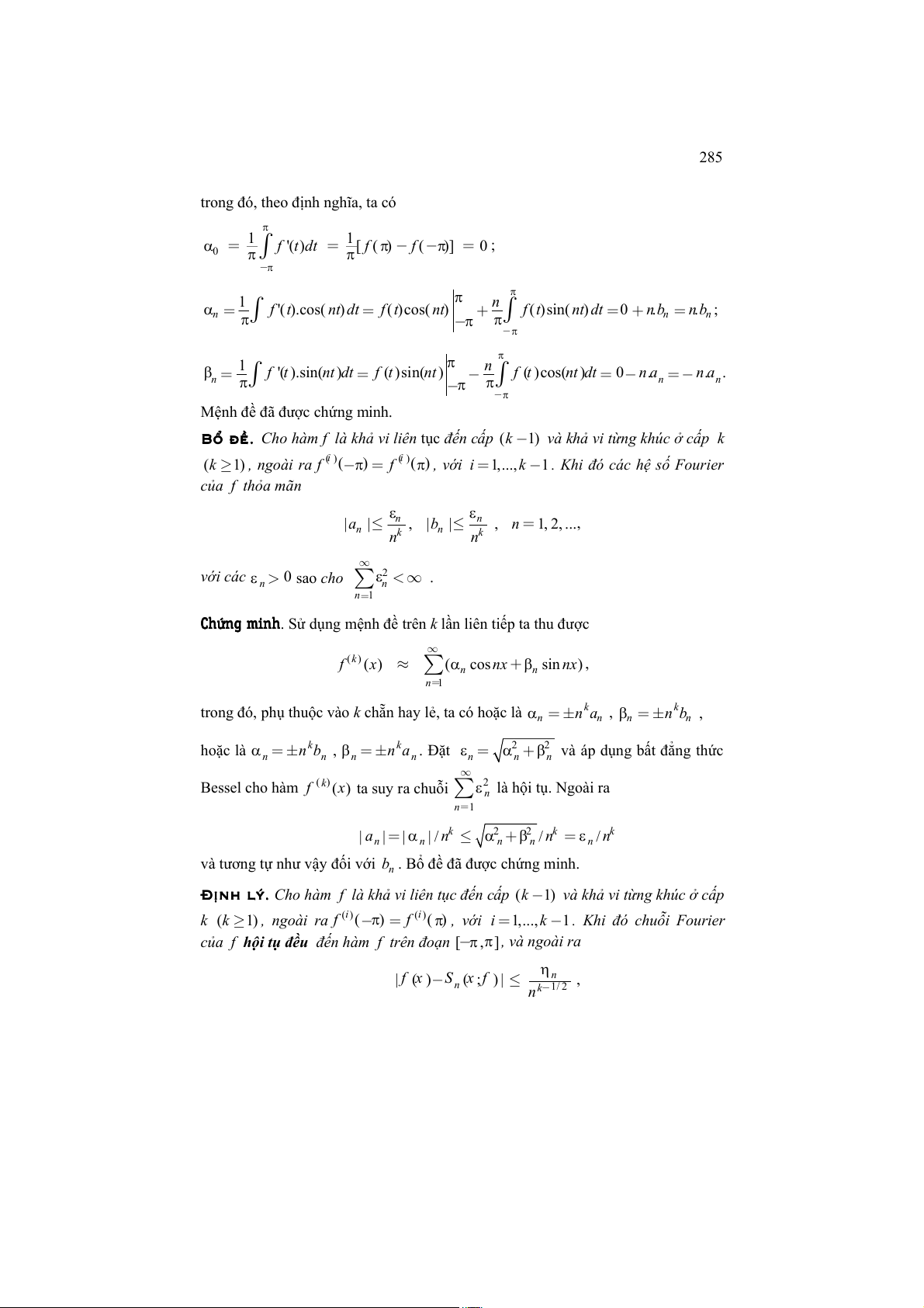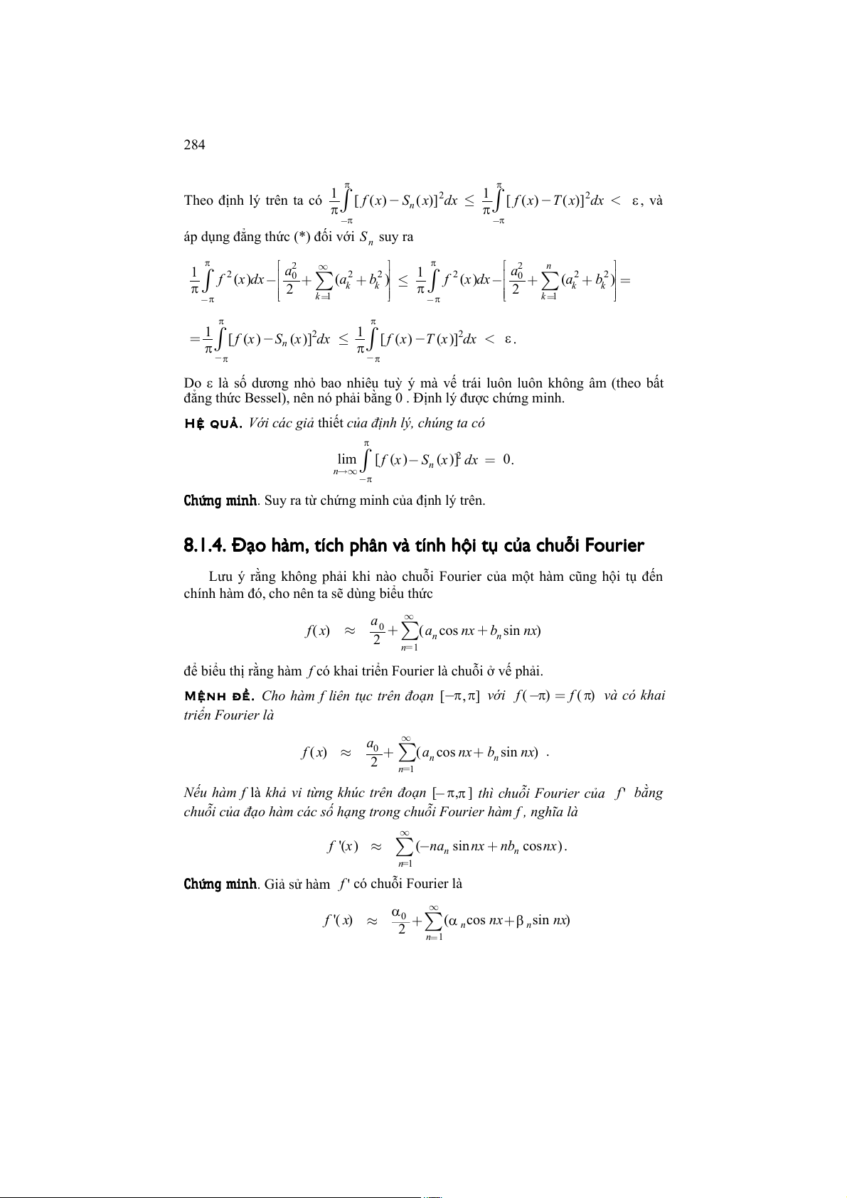 8.1.4. Đạo hàm, tích phân và tính hội tụ của chuỗi Fourier .................................................... 284