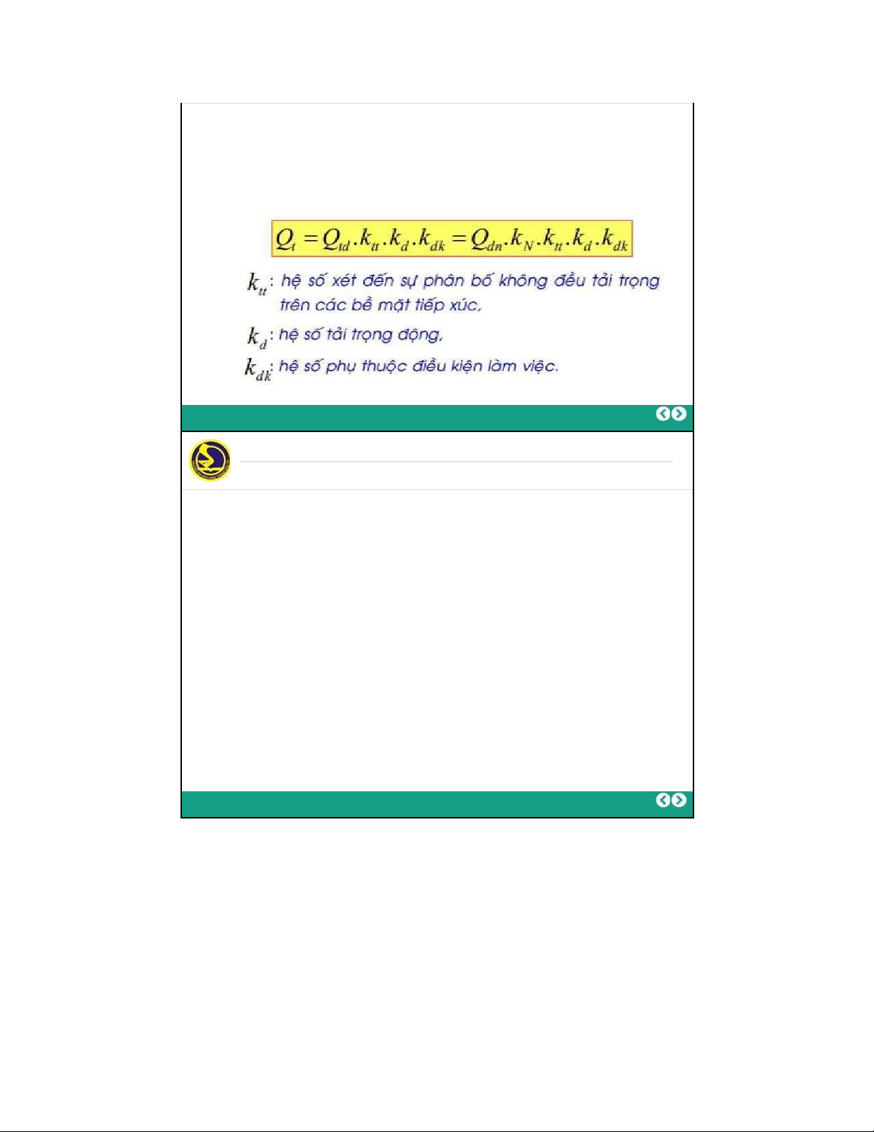 ➢ Để tránh phá hủy bề mặt làm việc, chi tiết máy cần có đủ độ  bền bề mặt