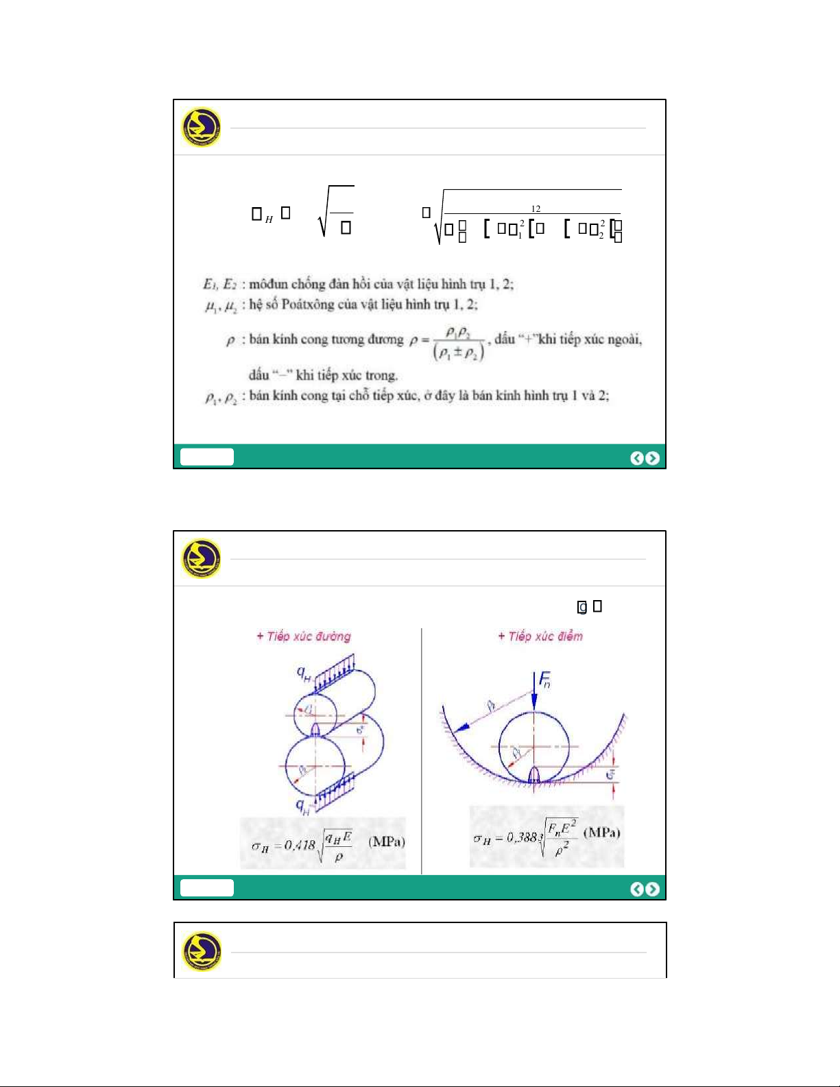 ➢ Ứng suất tiếp xúc sinh ra khi các chi tiết máy tiếp xúc