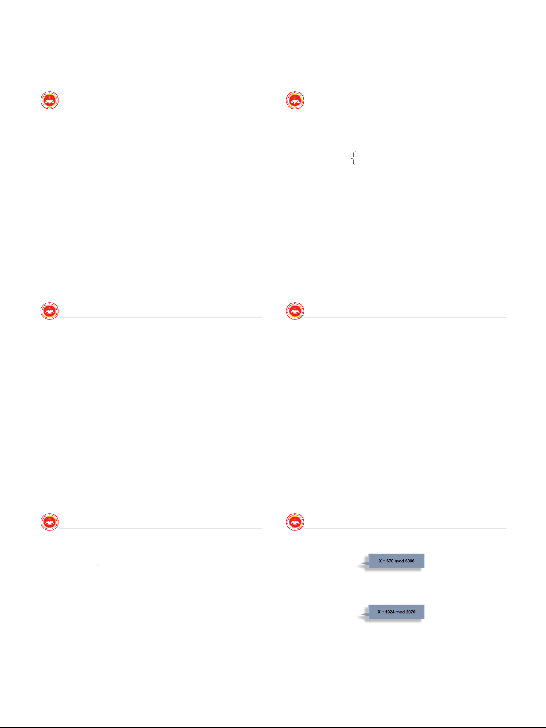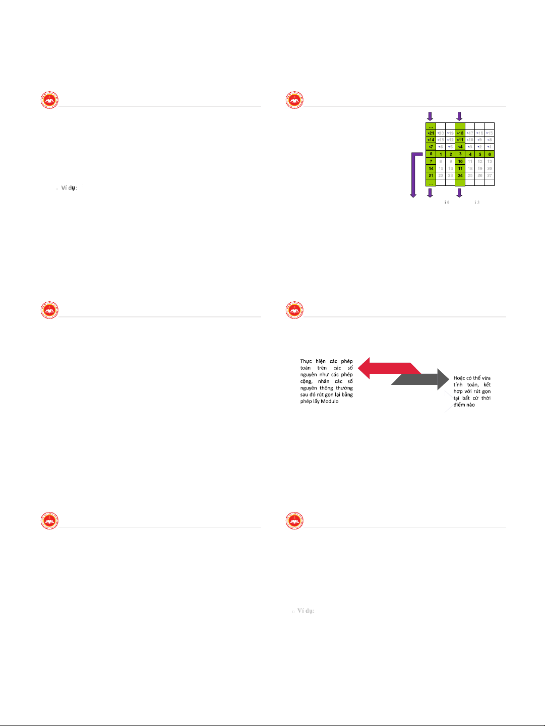 □ Ví dụ: -12 mod 7 ≡ -5 mod 7 ≡ 2 mod 7 ≡ 9 mod 7.