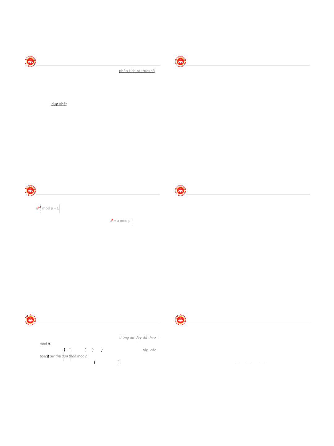 Các phép toán số học trên Modulo: ■ Ước số