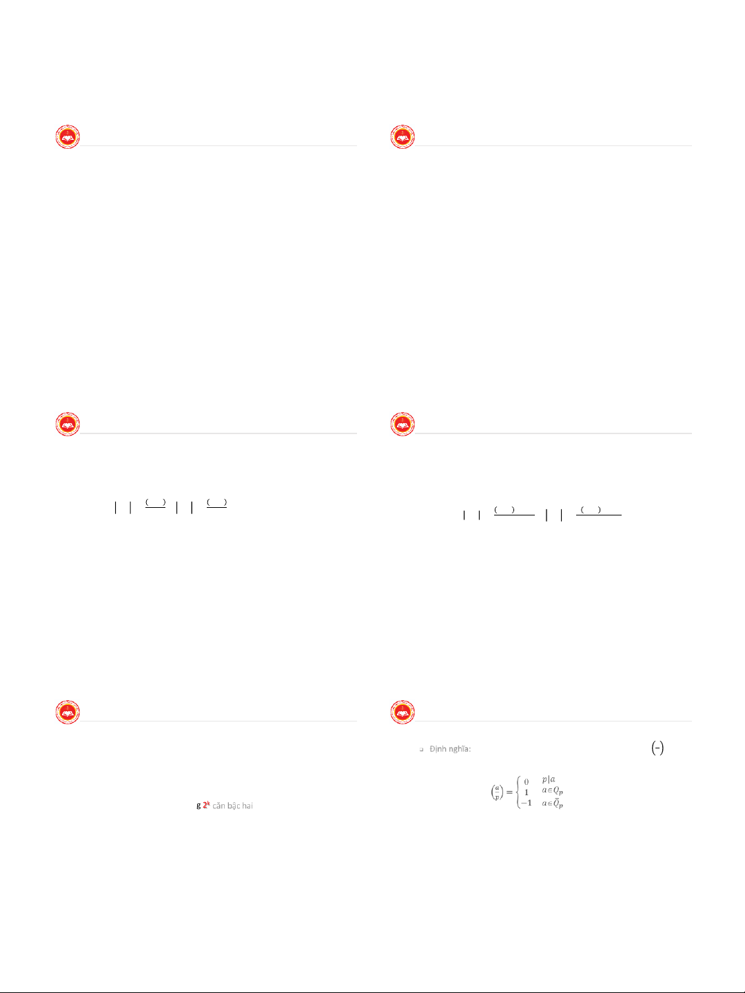 modulo, tính các kí hiệu Legendre và Jacobi.