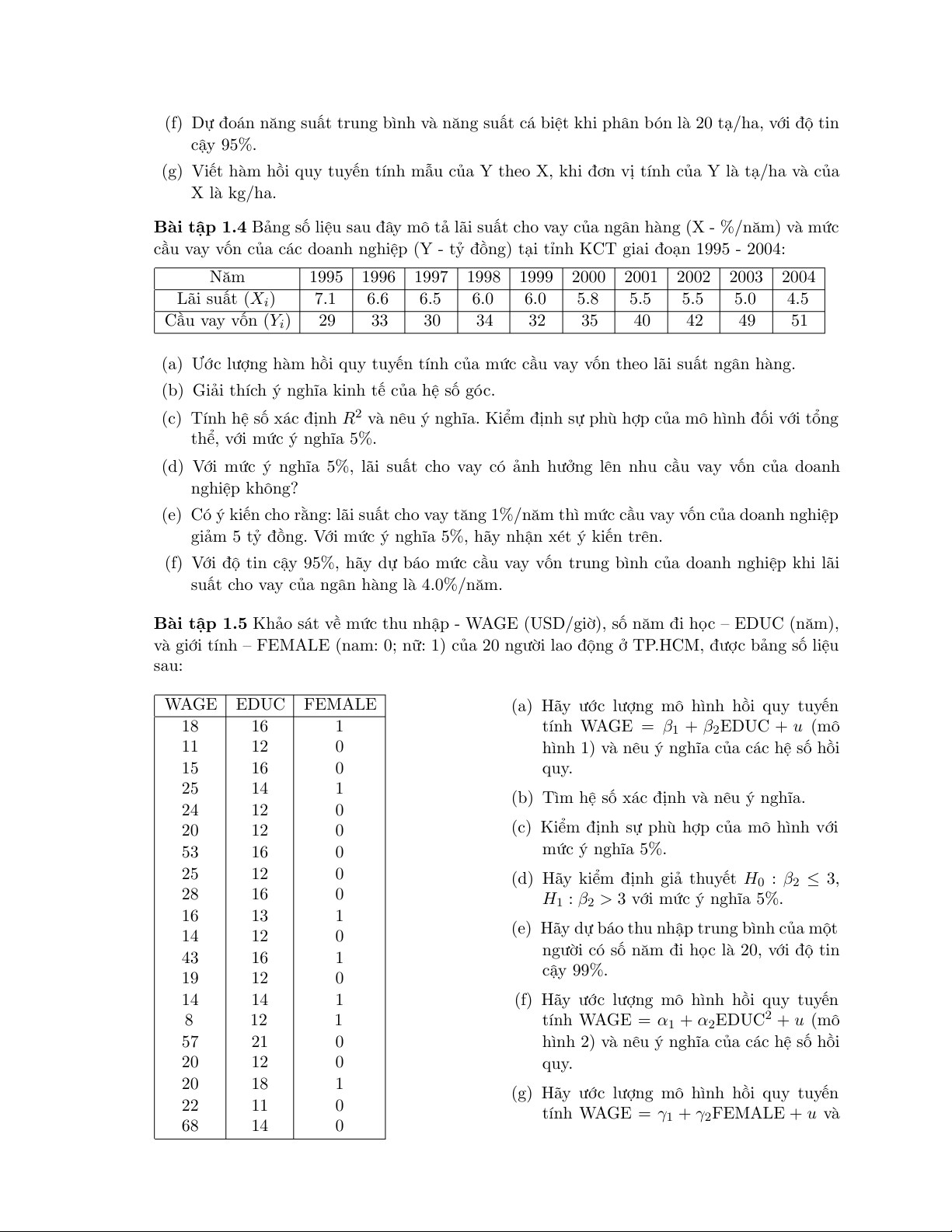 Bài tập 1.4 Bảng số liệu sau đây mô tả lãi suất cho vay của ngân hàng (X - %/năm) và mức