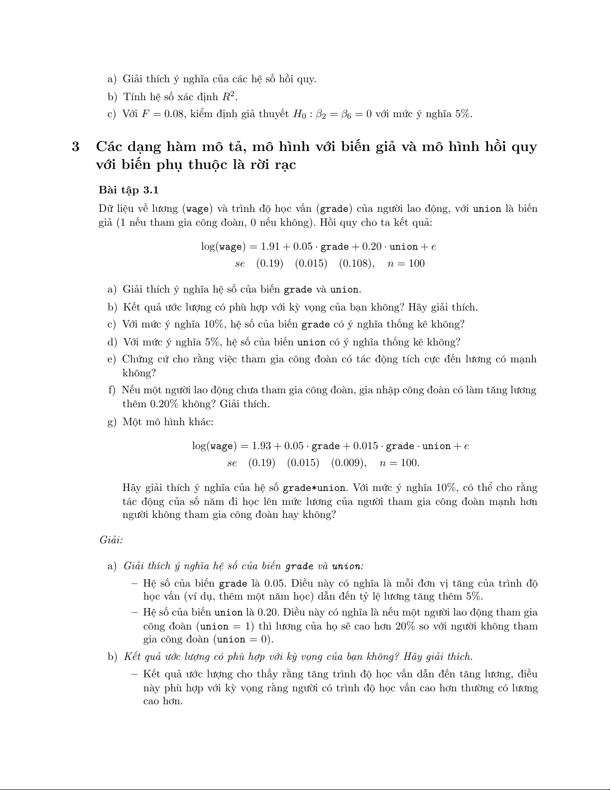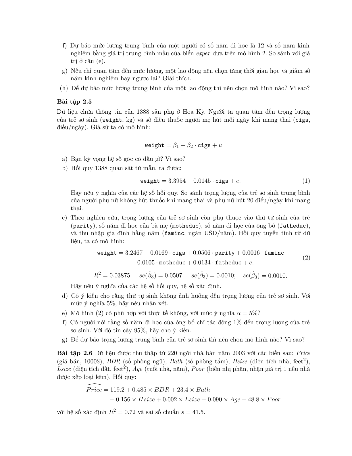 Bài tập 4.1 Xét mô hình hồi quy sau đây: