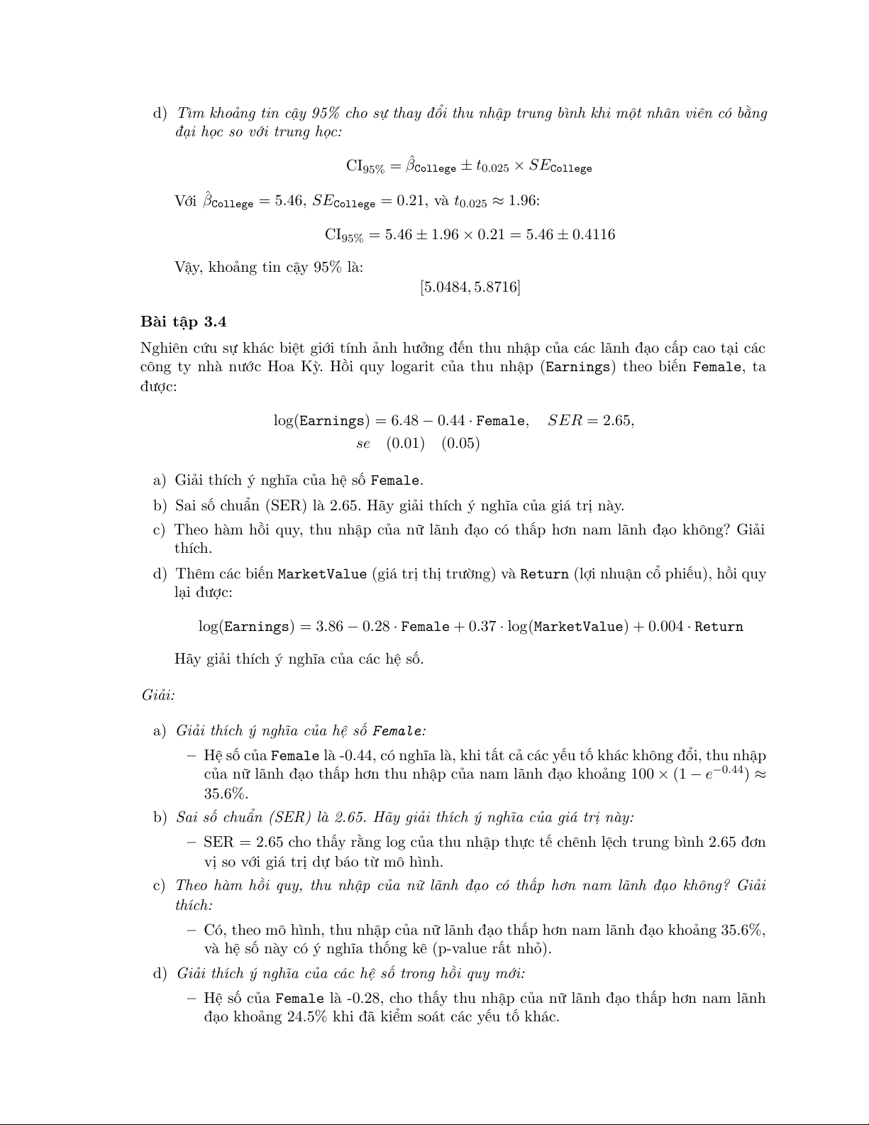 (c) Kiểm định giả thuyết H0 : β2 = −5.6, H1 : β2 = −5.6. Bạn có chấp nhận H0 với mức