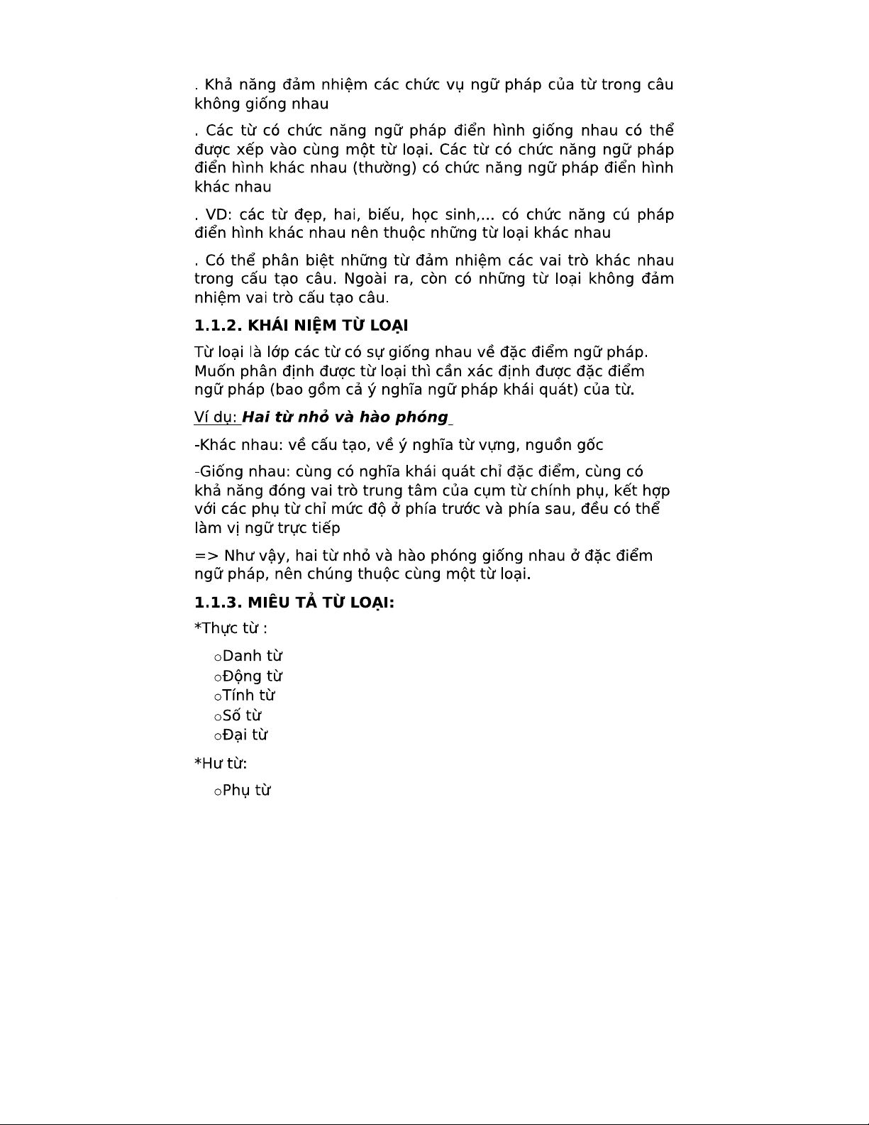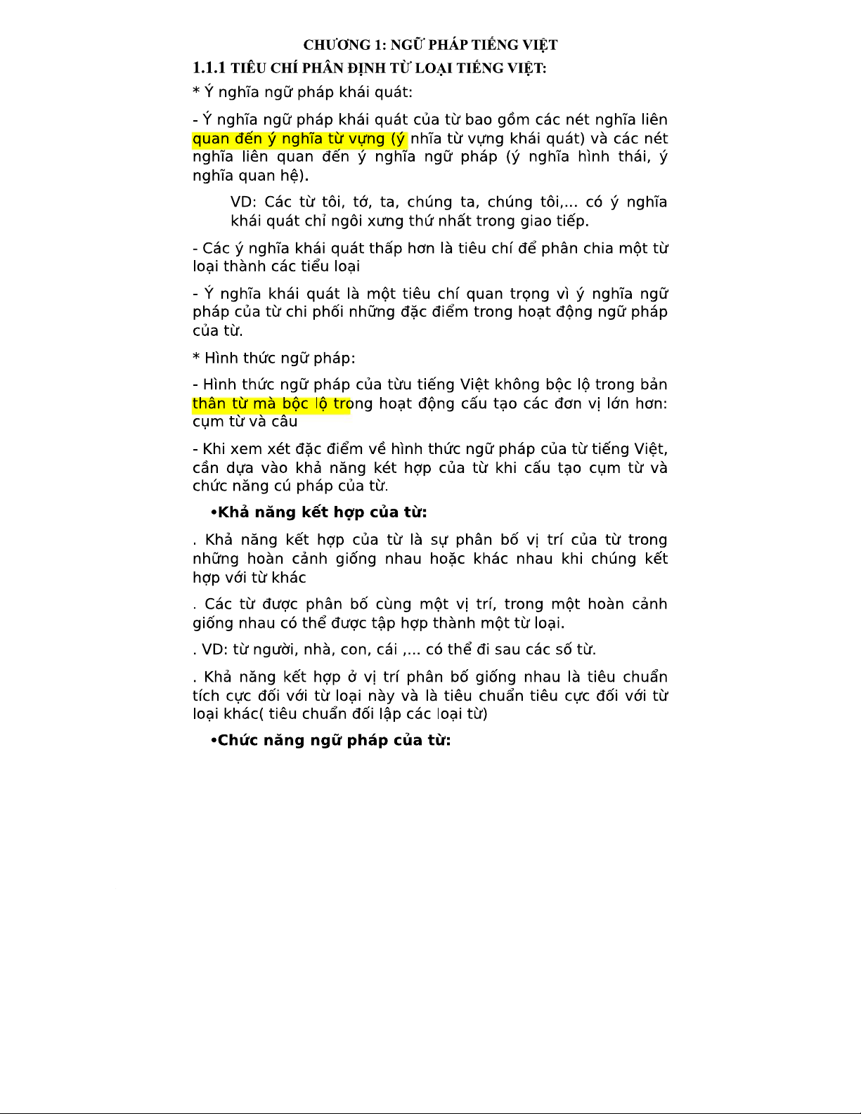 CHƯƠNG 1: CÁC TIÊU CHÍ VÀ ĐẶC ĐIỂM CỦA TỪ LOẠI TIẾNG VIỆT