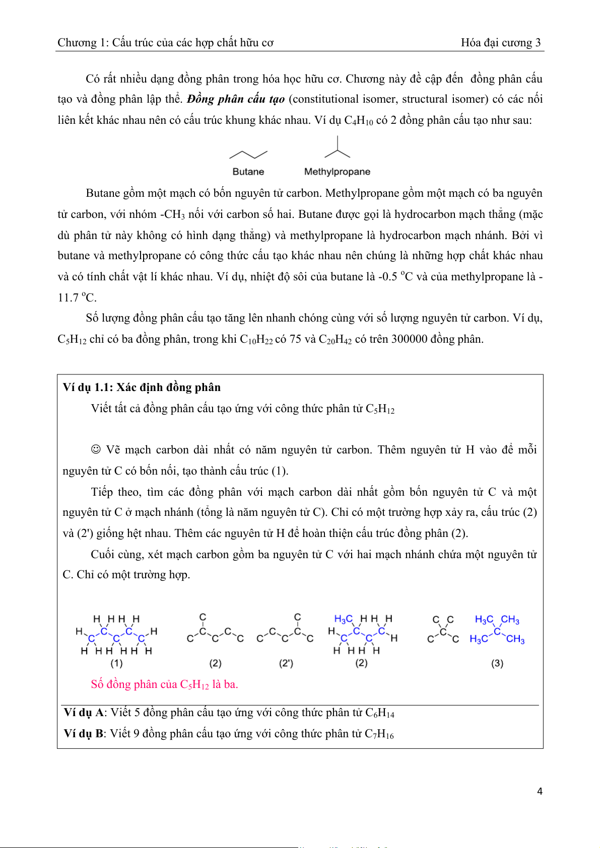 C. Chỉ có một trường hợp. Số ng phân c đồ ủa C5H12 là ba. Ví dụ A: Vi ng phân c ết 5 đồ ấu tạo ng v ứ ới công th c phân t ứ C ử 6H14 Ví dụ B: Vi ng phân c ết 9 đồ ấu tạo ng v ứ ới công th c phân t ứ C ử 7H16 4
