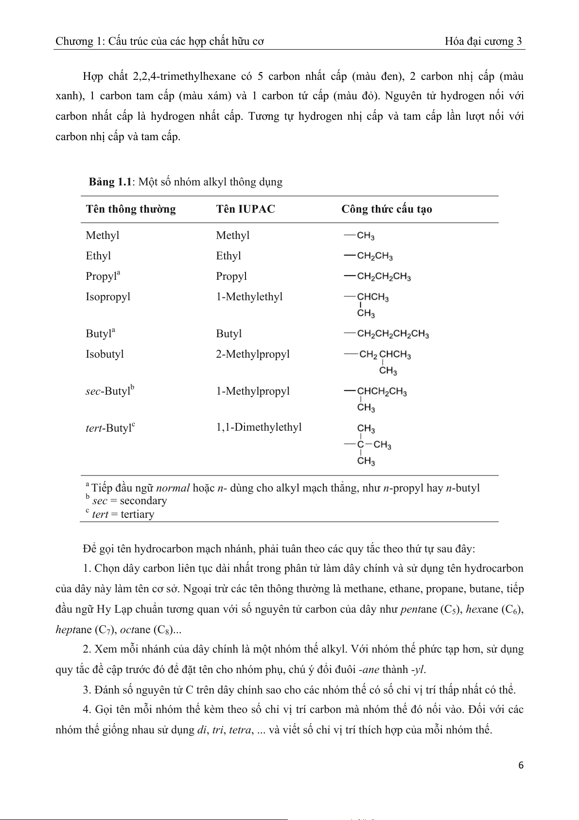 Chương 1: Cấu trúc của các hợp chất hữu cơ Hóa đại cương 3 Danh pháp