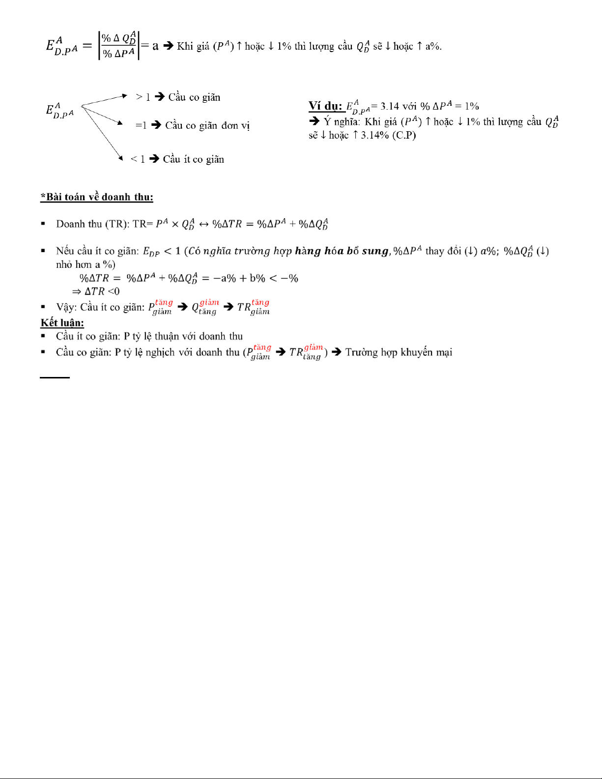 * Độ co dãn của cầu theo giá hàng hóa (PA) lOMoAR cPSD| 60791848 * Bài toán về doanh thu: Ví dụ = 1,75 suy ra 3 ý ⇒ Cầu co giãn