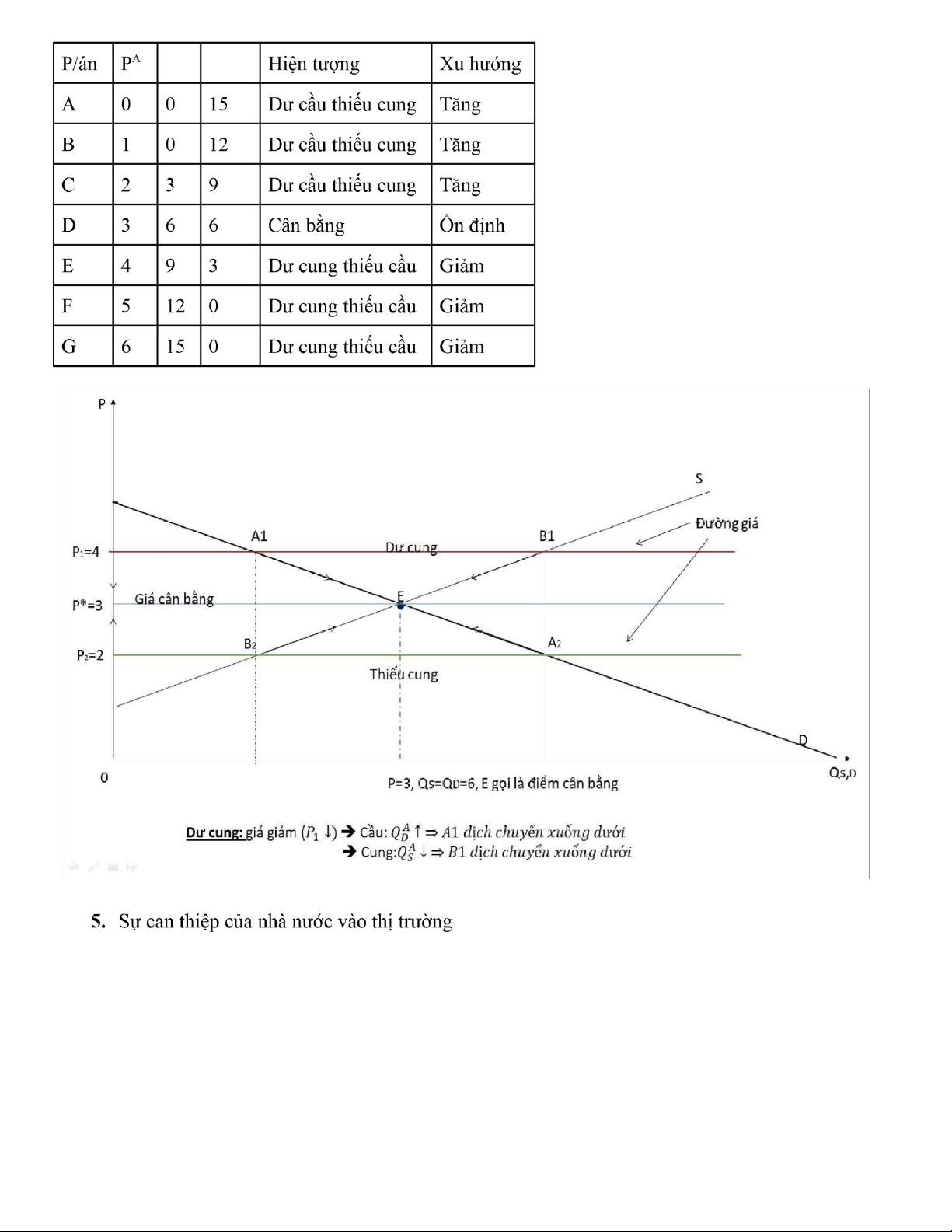● Thị trường có sự dư thừa hàng hóa: người bán sẽ giảm giá để tăng lượng bán ra làm cho giá di chuyển đến mức cân bằng.