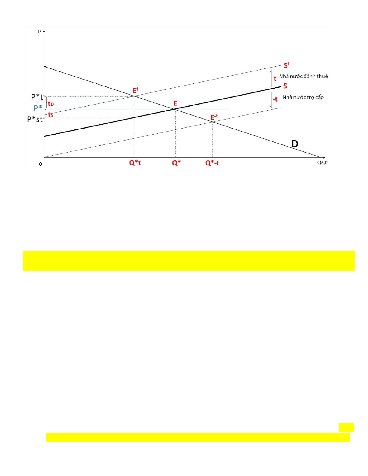 P*t là giá cân bằng mới, = giá người tiêu dùng trả (khi đánh thuế P* tăng nhưng tăng ít hơn giá thuế P*st