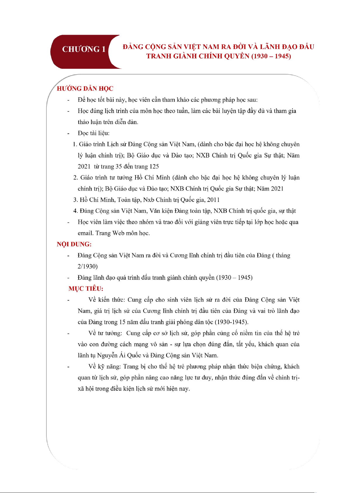 và lãnh đạo quá trình đấu tranh giành chính quyền 1930 - 1945” sẽ giúp chúng ta có cơ