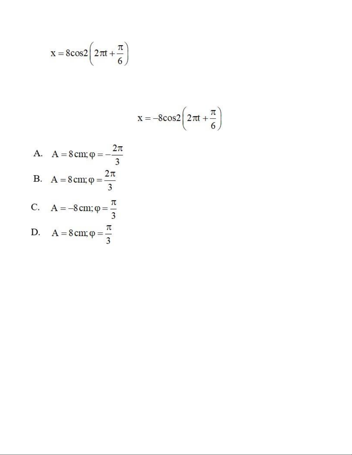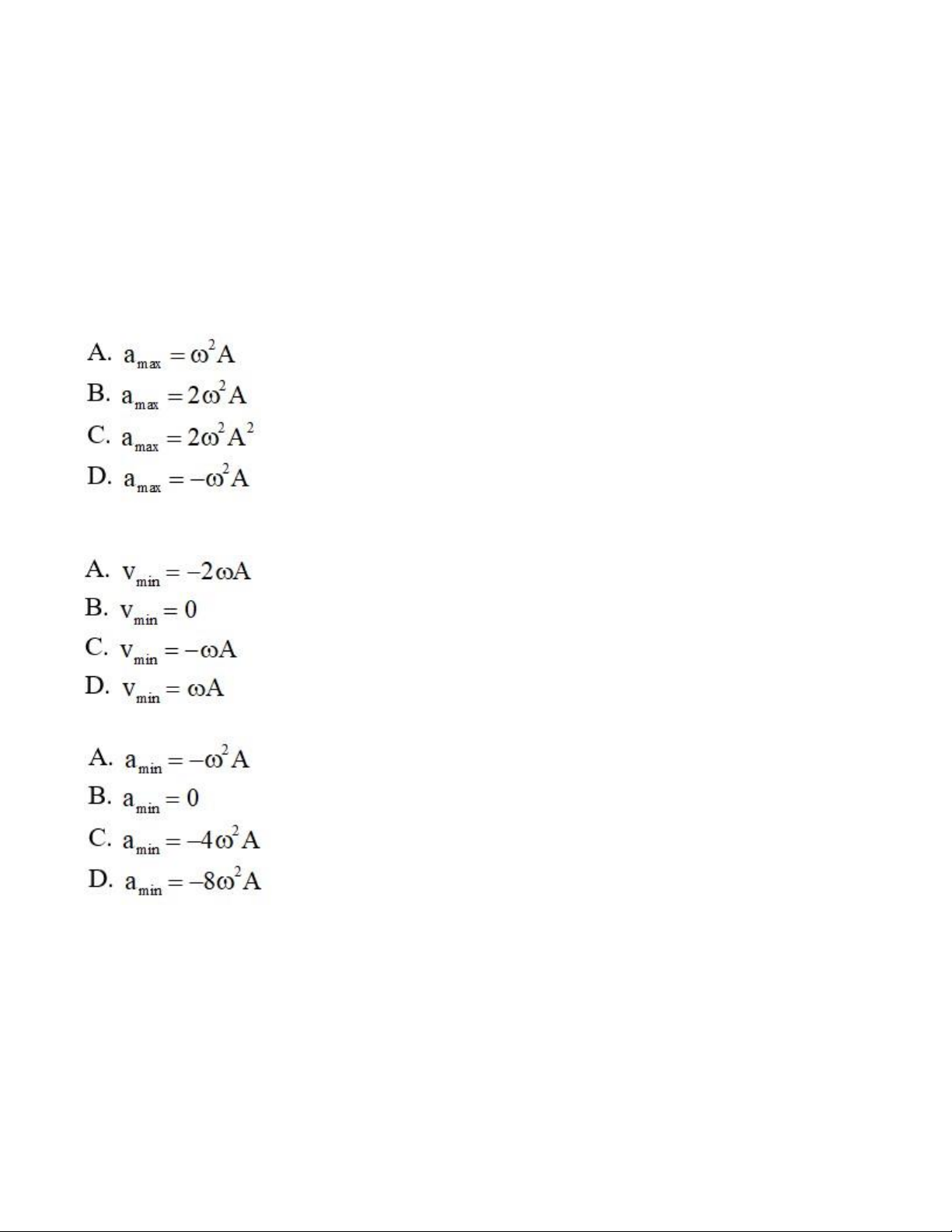 Câu 6. Trong dao động điều hòa x = 2Acos(2ωt + φ), giá trị cực tiểu của gia tốc là: