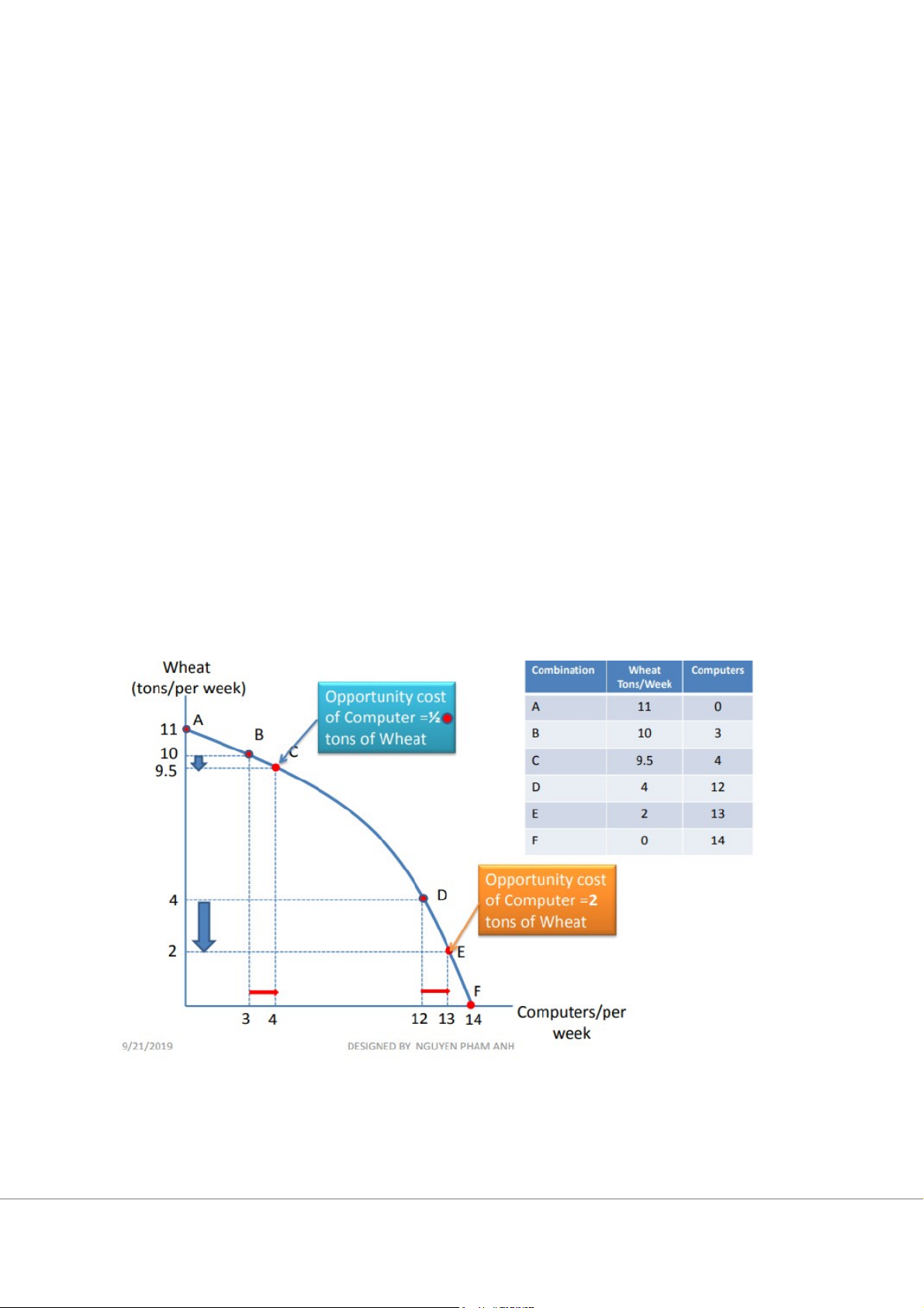 - Biểu thị chi phí cơ hội của sản xuất nhiều hơn một hàng hoá khi lượng của