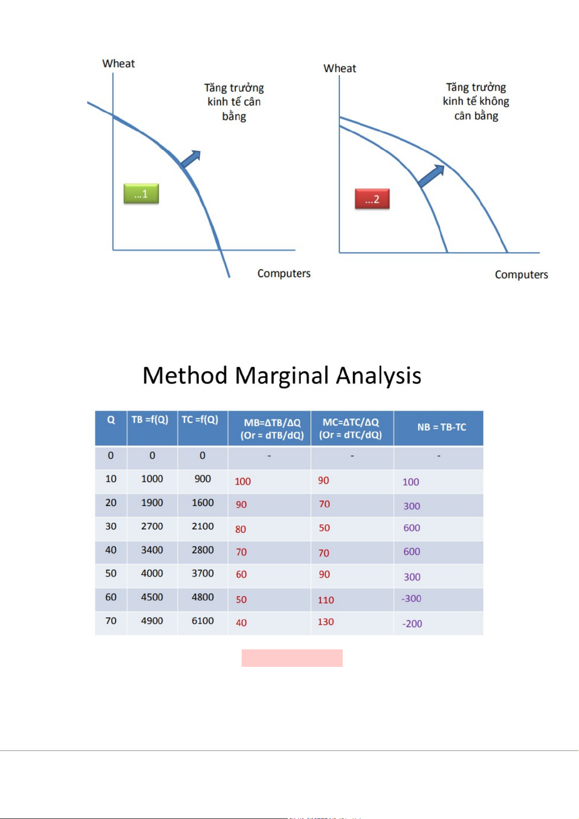 - Tăng trưởng kinh tế không cân bằng: Tiến bộ và công nghệ. Phân tích cận biên NB = TB – TC