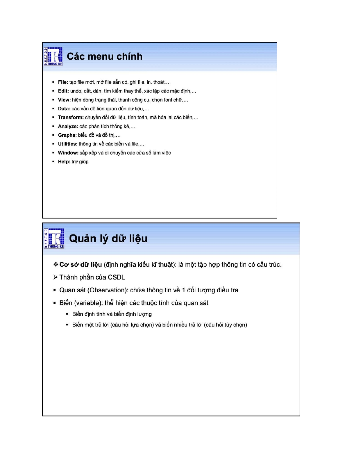 • Nắm được các phương pháp phân tích thống kê và có thể thực hiện được một số