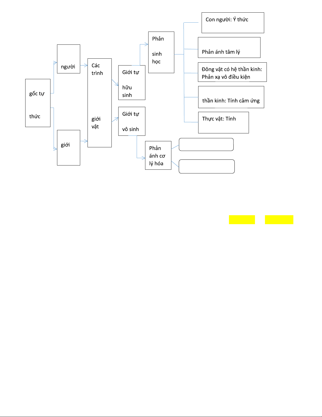 hình thức, như: phản ánh sinh học, phản ánh tâm lý, phản ánh vật lý, hóa học, phản ánh của ý thức. lOMoAR cPSD| 61464806 ánh Động vật bậc cao: Bộ óc con độ nhiên Nguồn phản Động vật chưa có hệ ánh nhiên của của ý thế nhiên kích thích chất Thế Thụ động khách quan Chưa chọn lọc