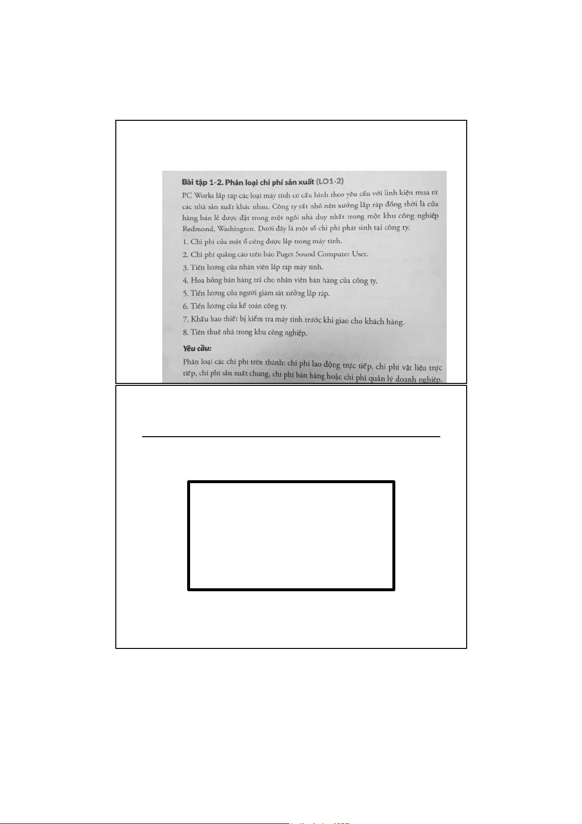 chi phí trực tiếp hoặc chi phí gián tiếp. gián tiếp. 17 lOMoAR cPSD| 58702377 B i t ậ p 1-2 18 Mục tiêu học tập 3 Hiểu các phân loại chi