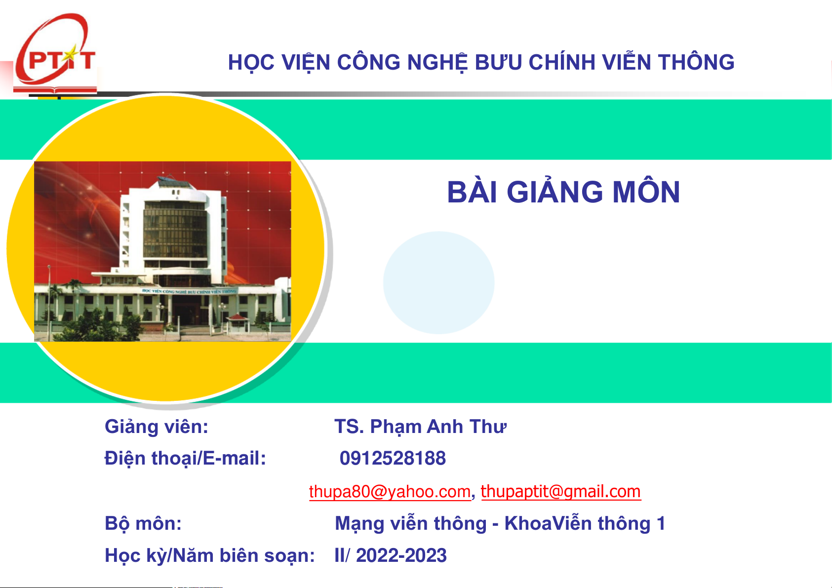 HỌC VIỆN CÔNG NGHỆ BƯU CHÍNH VIỄN THÔNG BÀI GIẢNG MÔN
