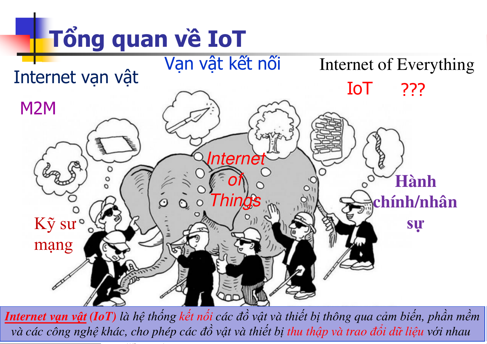 IoT kết nối tất cả các “Things”, nên được gọi là IoT Tổng quan về IoT Vạn vật kết nối Internet of Everything Internet vạn vật IoT ??? M2M Internet of Hành Things chính/nhân Kỹ sư sự mạng