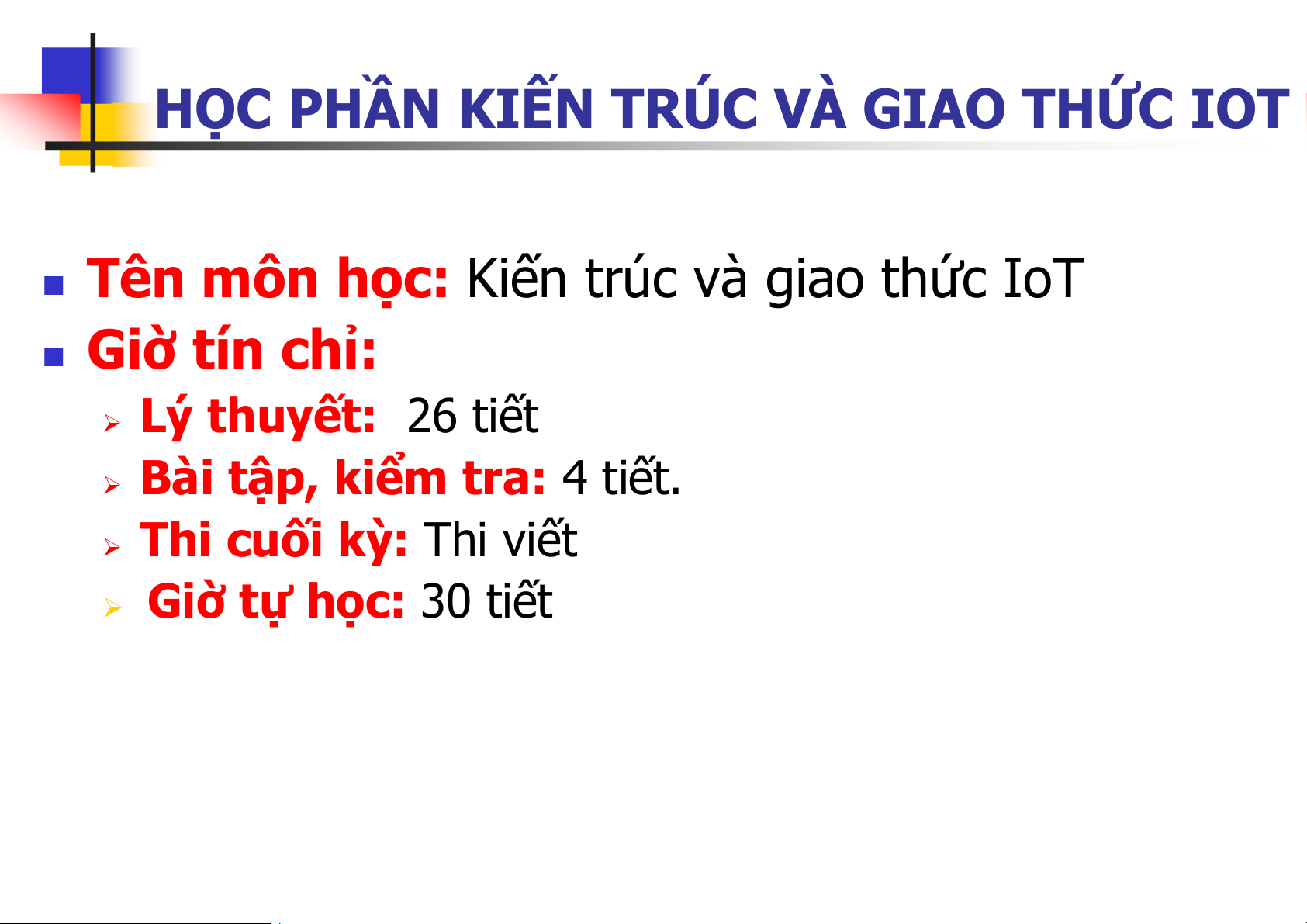 Tên môn học: Kiến trúc và giao thức IoT