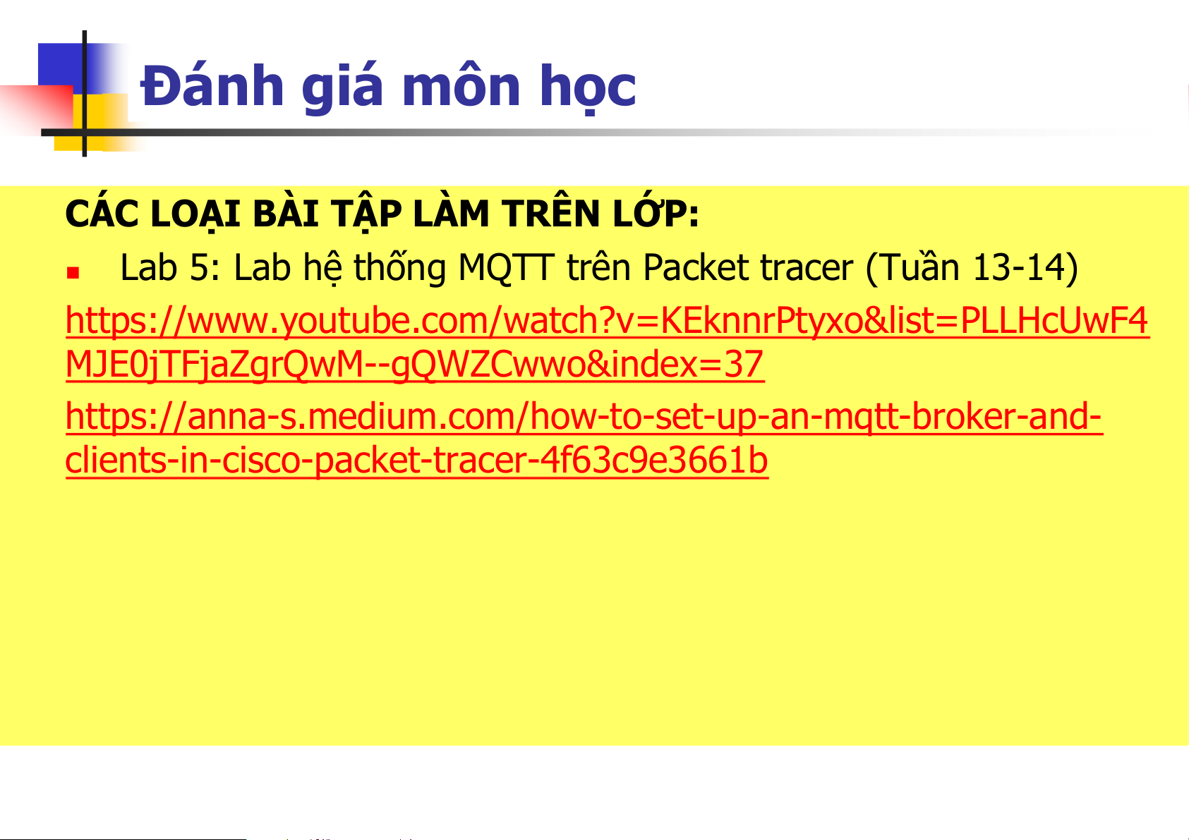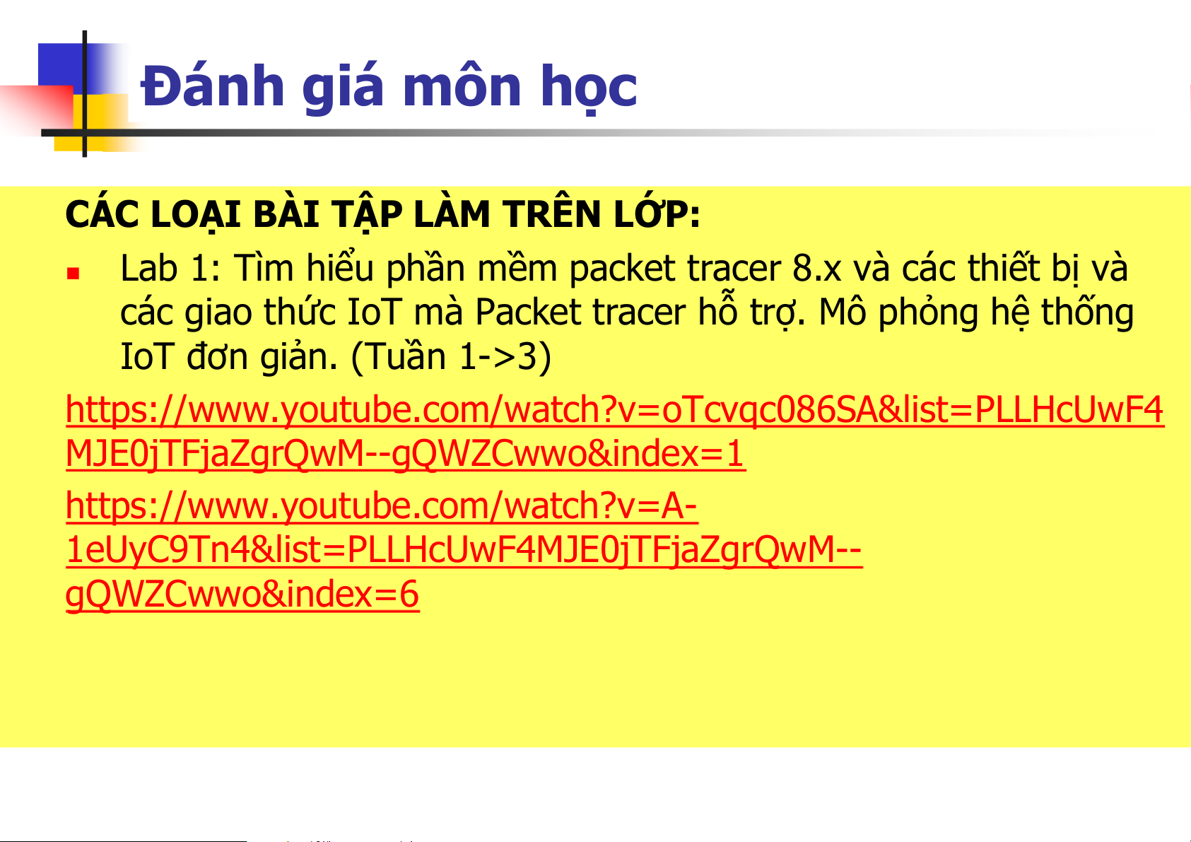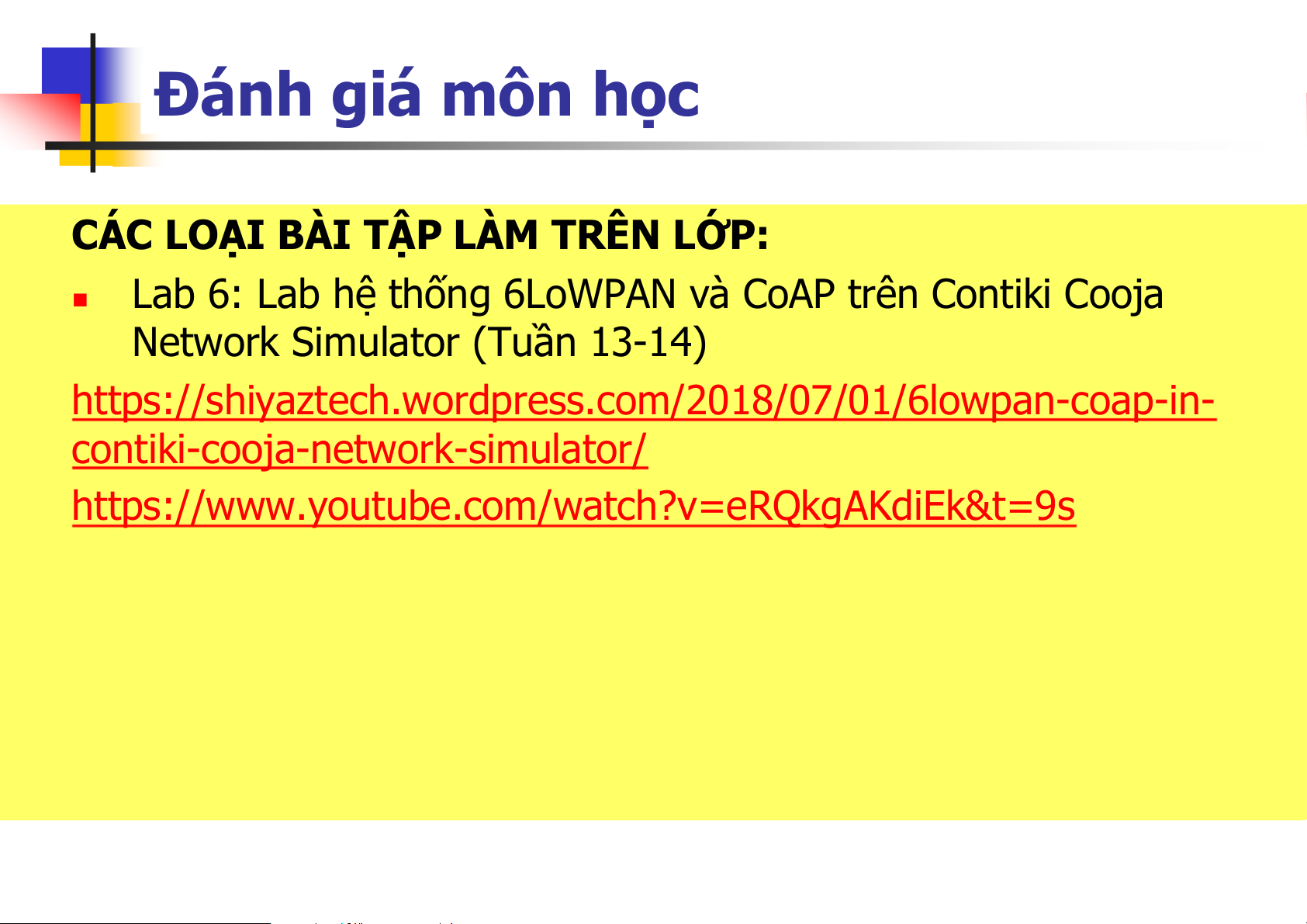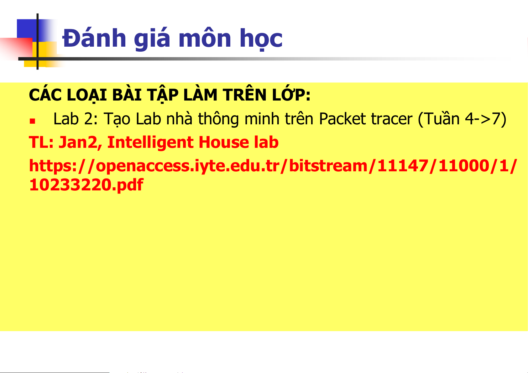 Kiến trúc và giao thức IoT, Bài giảng của bộ môn Tín hiệu