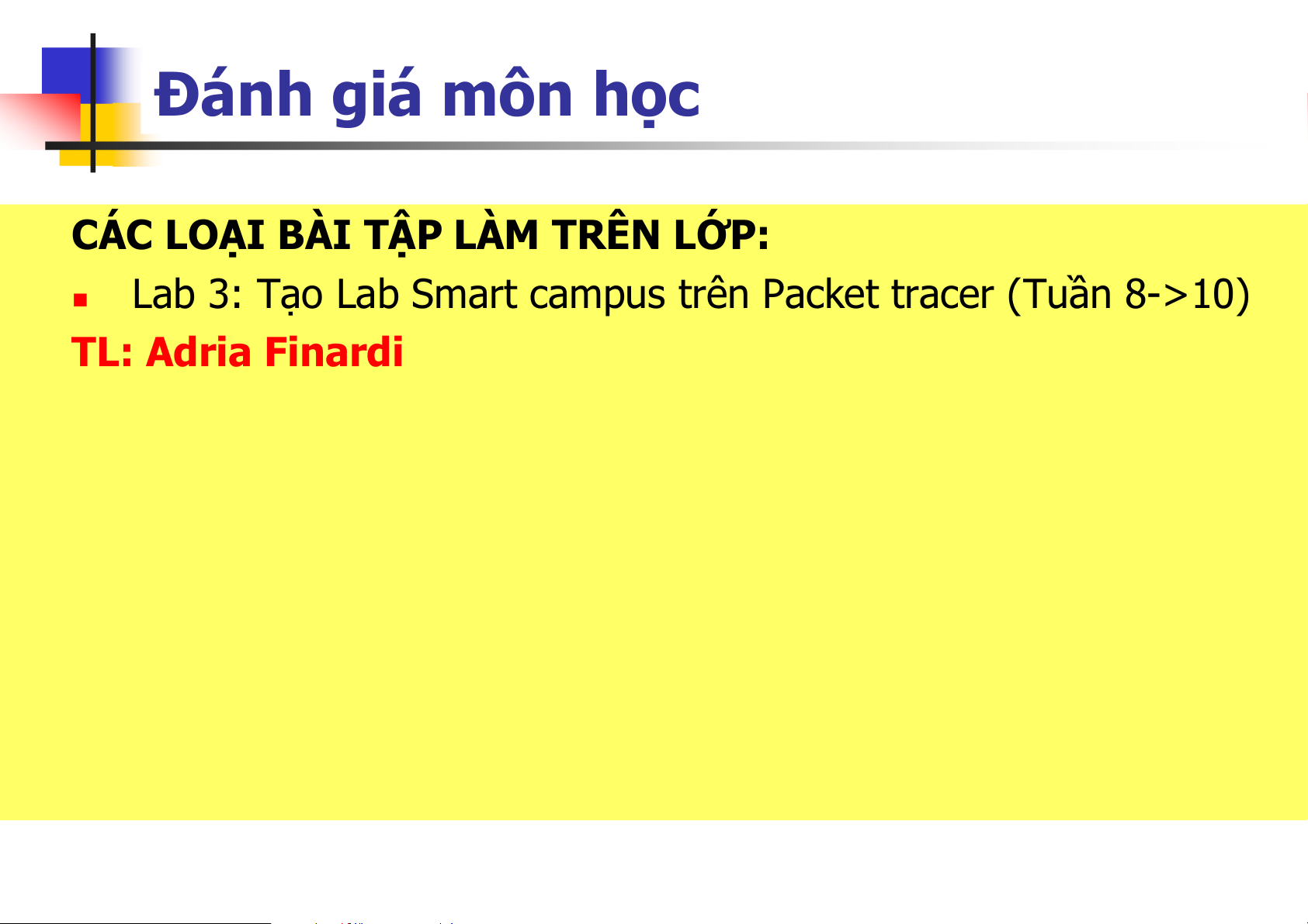 Lab 3: Tạo Lab Smart campus trên Packet tracer (Tuần 8->10) TL: Adria Finardi Đánh giá môn học
