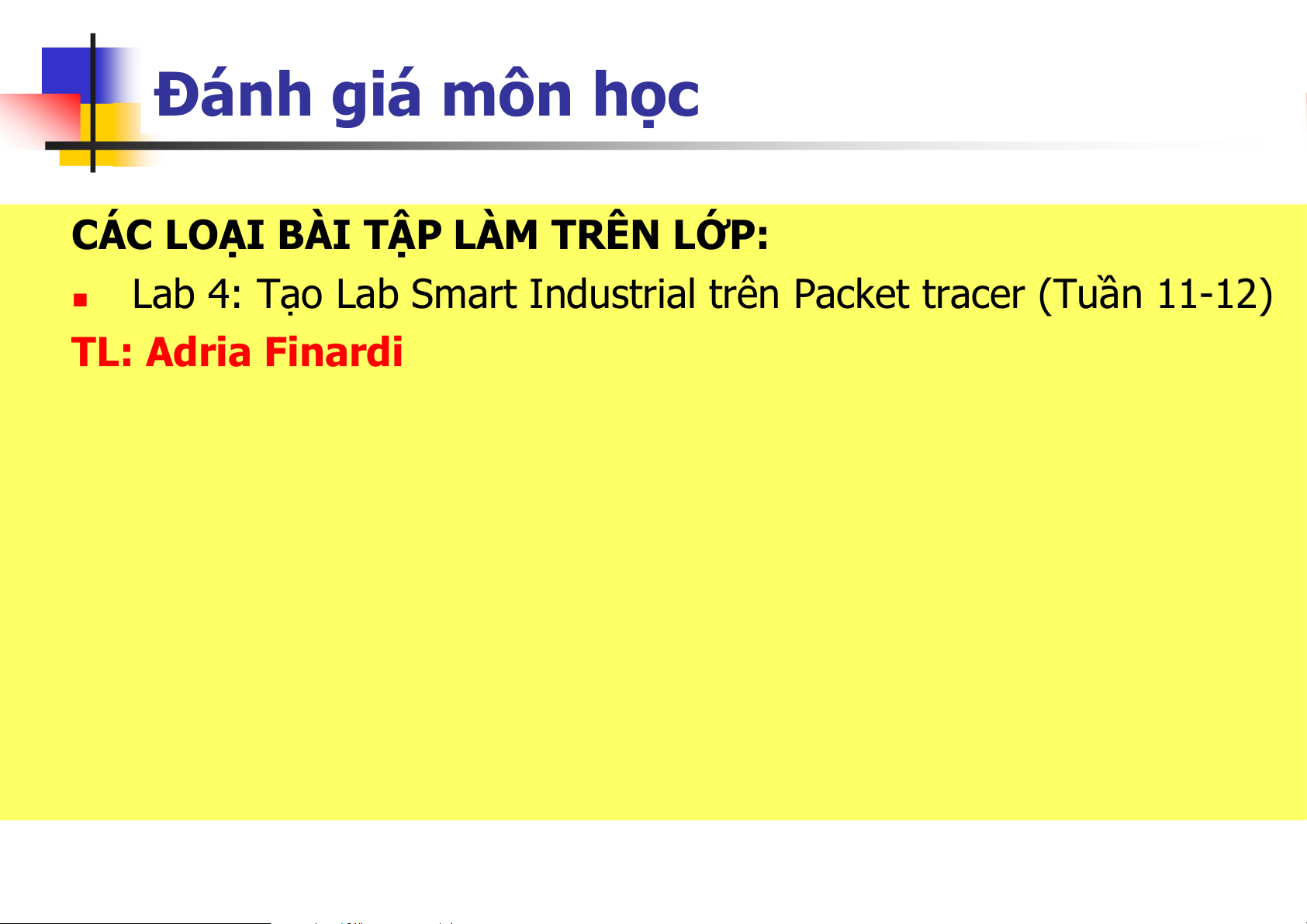 Lab 4: Tạo Lab Smart Industrial trên Packet tracer (Tuần 11-12) TL: Adria Finardi Đánh giá môn học