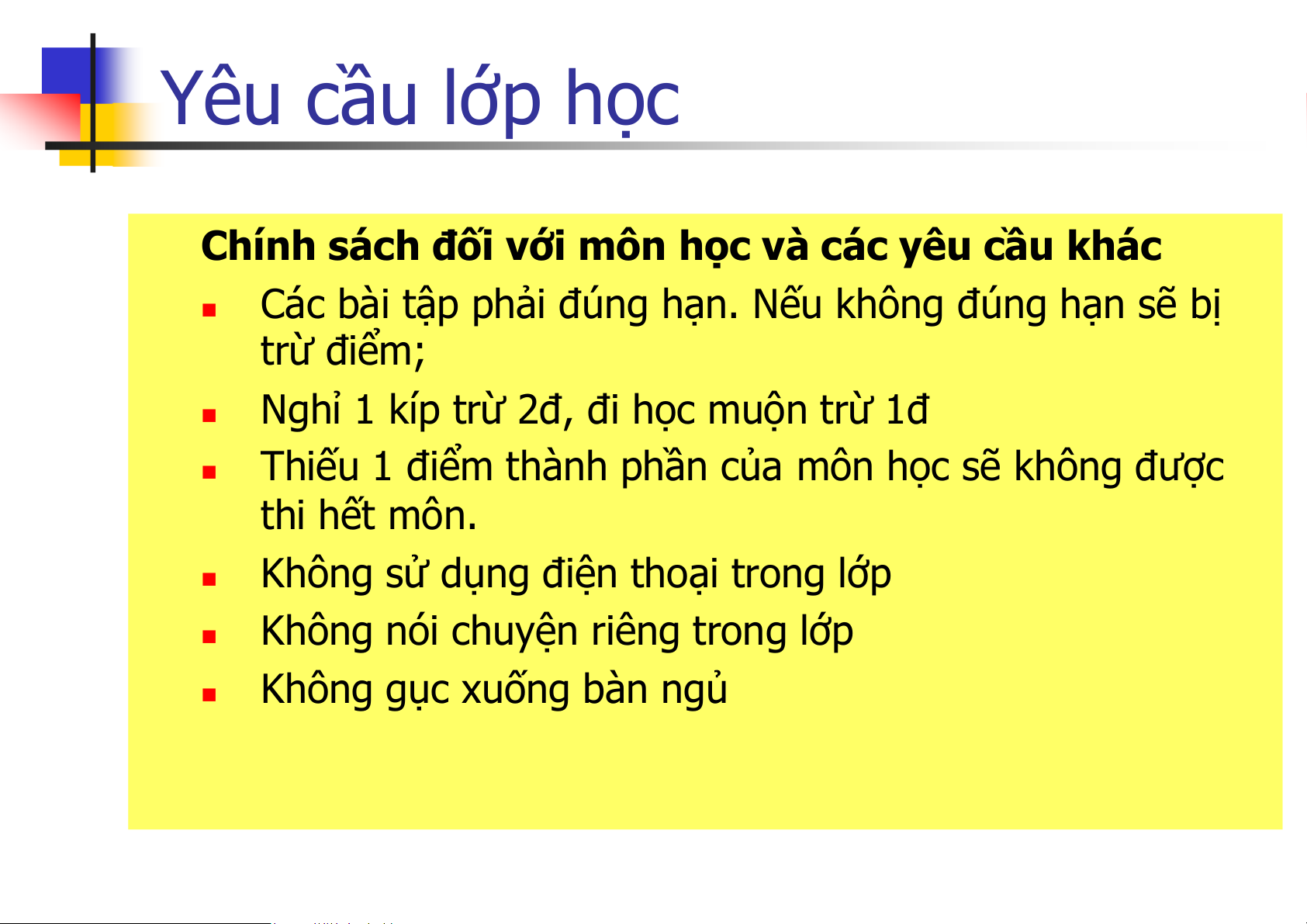 Chính sách đối với môn học và các yêu cầu khác